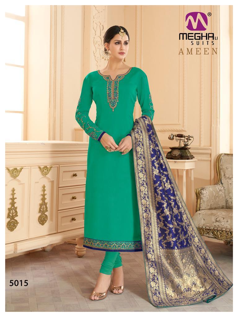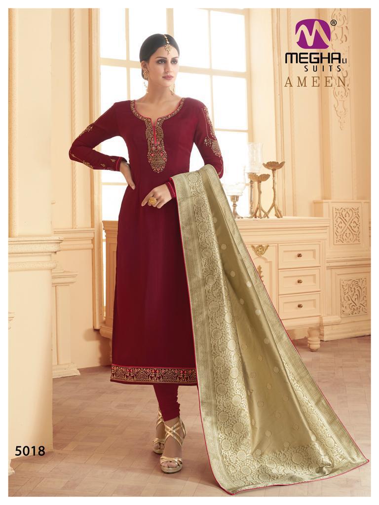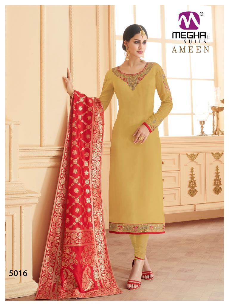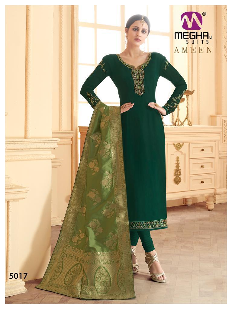 Brand - Megha suits . Catlog name -AMEEN. Rate -1299 per pcs . Set To Set: GST 5 Percent Extra. Delivery 3 days |