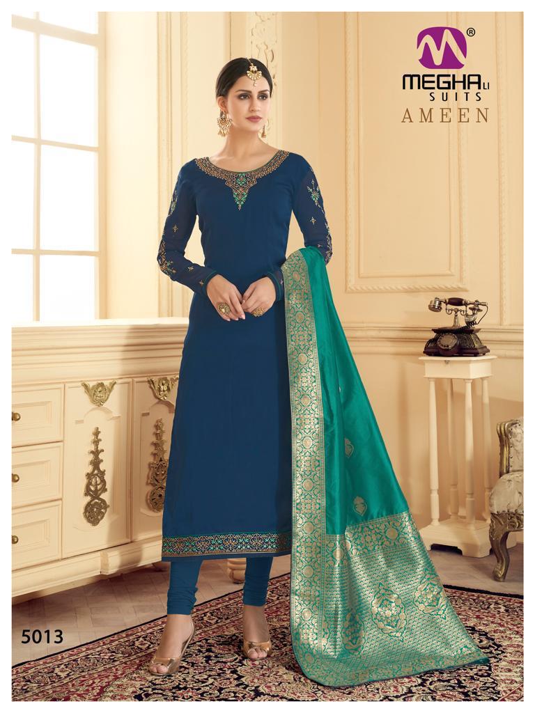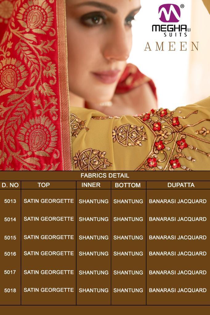 Buy Online Ameen By Meghali Suits 5013 Series Fancy Satin Georgette Party Wear Salwar Kameez Catlog Wholesaler Surat 6 Pcs of Full Catalogue at Wholesale Price. Looking for Ameen By Meghali Suits 5013 Series Fancy Satin Georgette Party Wear Salwar Kameez Catlog Wholesaler Surat Full Catalouge at Best Price? Buy Now Ameen By Meghali Suits 5013 Series Fancy Satin Georgette Party Wear Salwar Kameez Catlog Wholesaler Surat at Wholesale Rate of Rs 7794 with Total 6 Pcs from authroized dealer and supplier of MEGHALI SUIT Brand. Cost of Each piece is just only Rs 1299 which is very low and affordable price to resale the product in your retail store ,This is Surat based Wholesale Supplier & Dealer of MEGHALI SUIT Brand. Click on Brand name to Know more about MEGHALI SUIT Brand's products.Call or Whatsapp on 9898838984 for booking or enquiry
