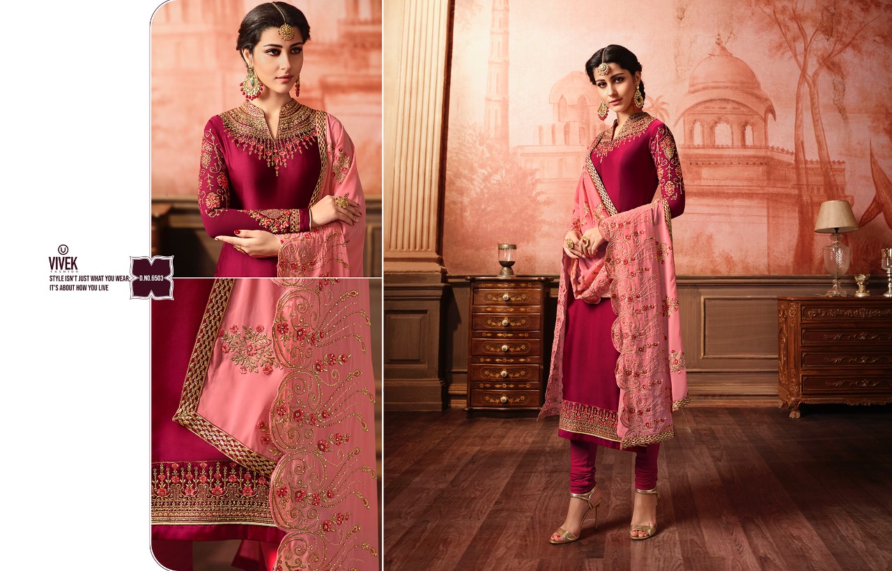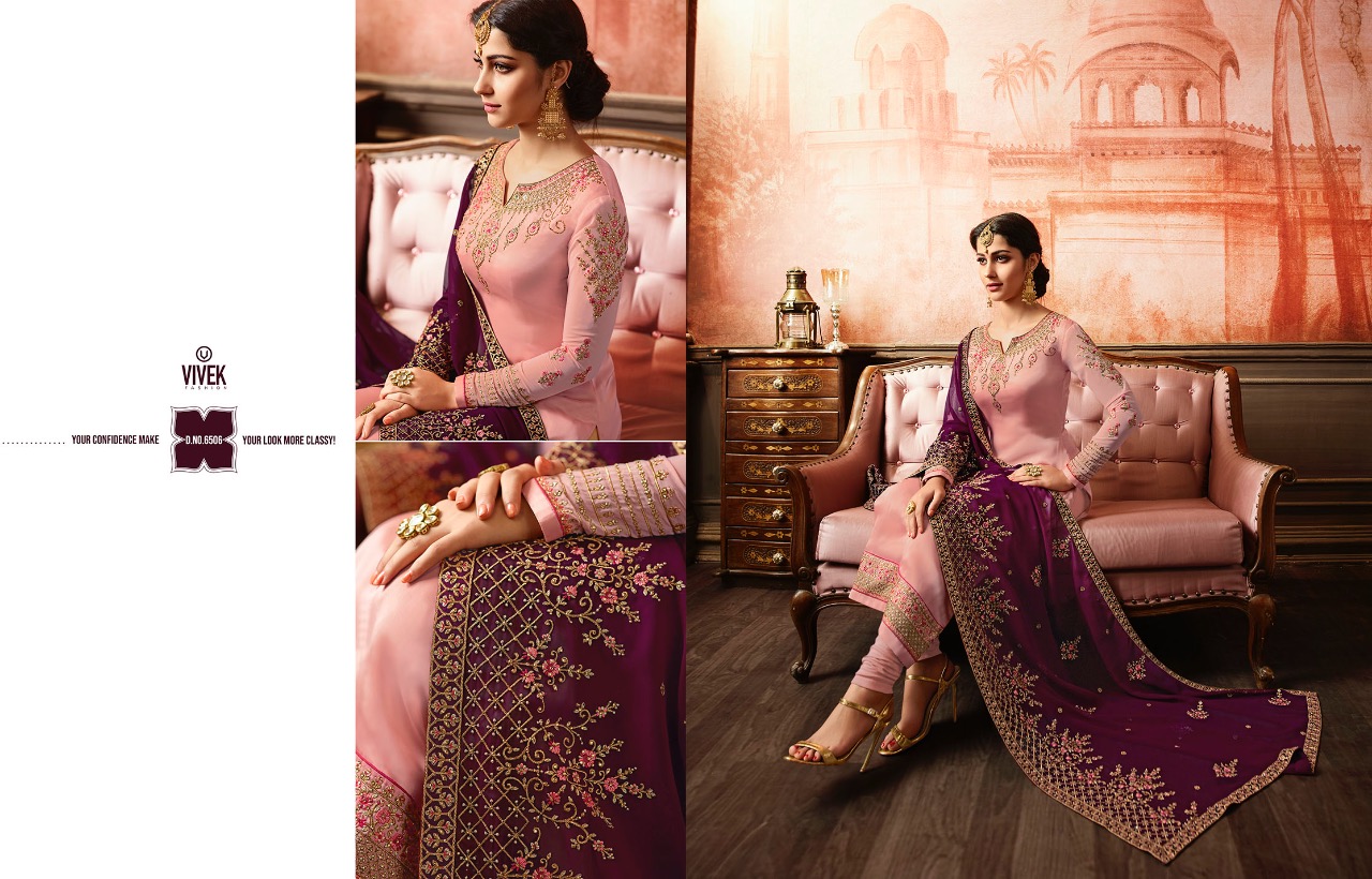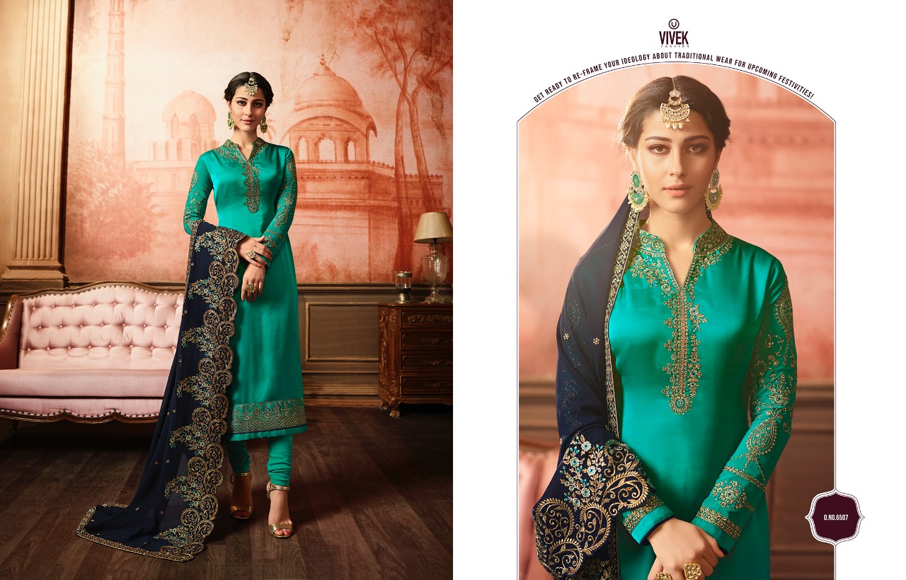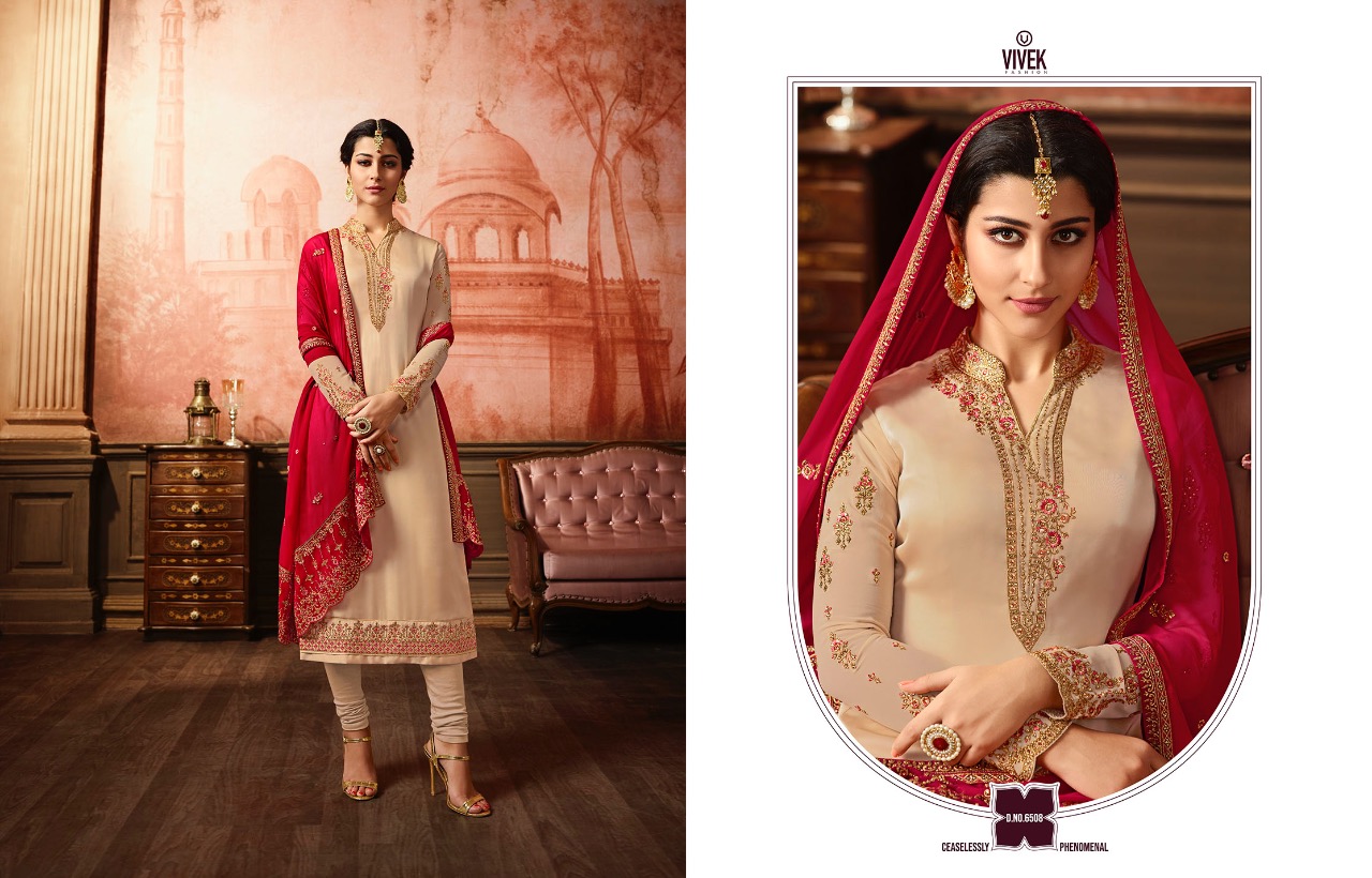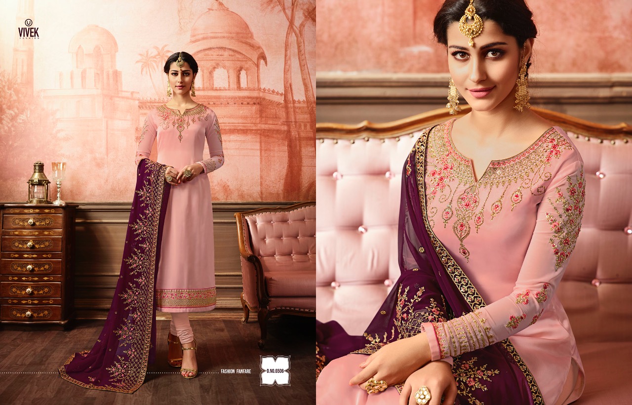 Buy Online Ameen By Vivek 6501 Series Designer Satin Georgette Salwar Kameez Catlog Wholesale Dealer Surat 8 Pcs of Full Catalogue at Wholesale Price. Looking for Ameen By Vivek 6501 Series Designer Satin Georgette Salwar Kameez Catlog Wholesale Dealer Surat Full Catalouge at Best Price? Buy Now Ameen By Vivek 6501 Series Designer Satin Georgette Salwar Kameez Catlog Wholesale Dealer Surat at Wholesale Rate of Rs 14000 with Total 8 Pcs from authroized dealer and supplier of VIVEK FASHION Brand. Cost of Each piece is just only Rs 1750 which is very low and affordable price to resale the product in your retail store ,This is Surat based Wholesale Supplier & Dealer of VIVEK FASHION Brand. Click on Brand name to Know more about VIVEK FASHION Brand's products.Call or Whatsapp on 9898838984 for booking or enquiry