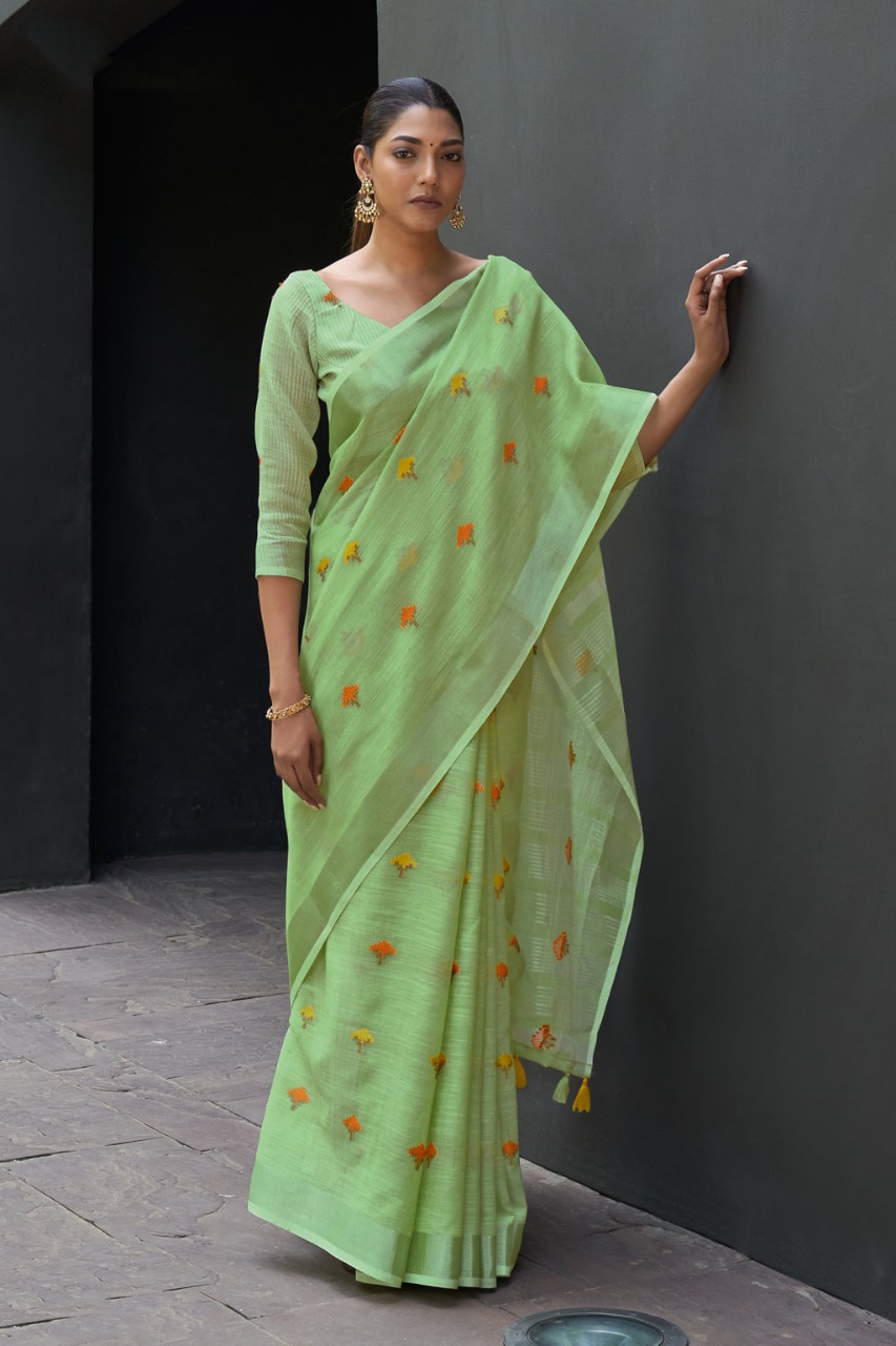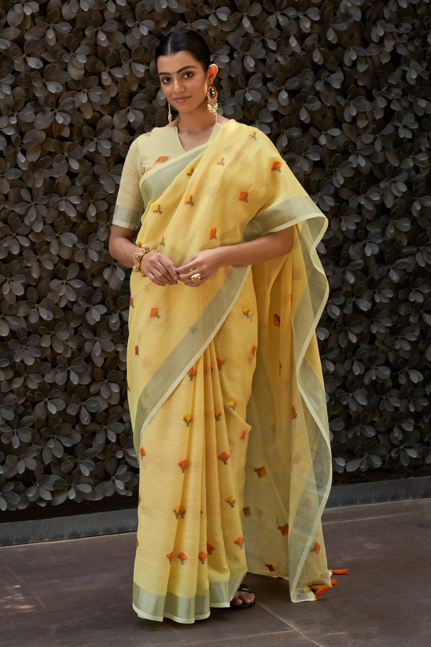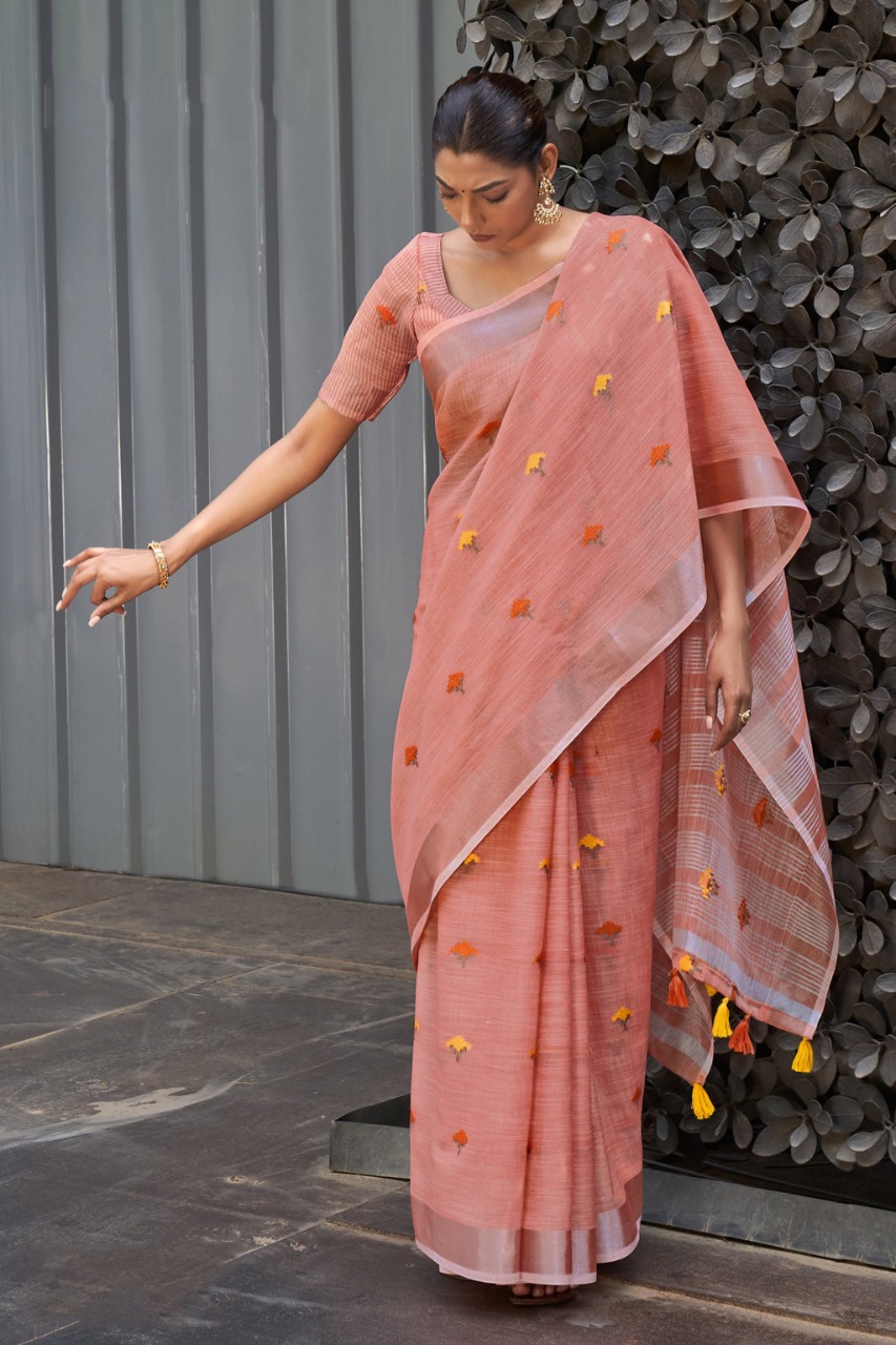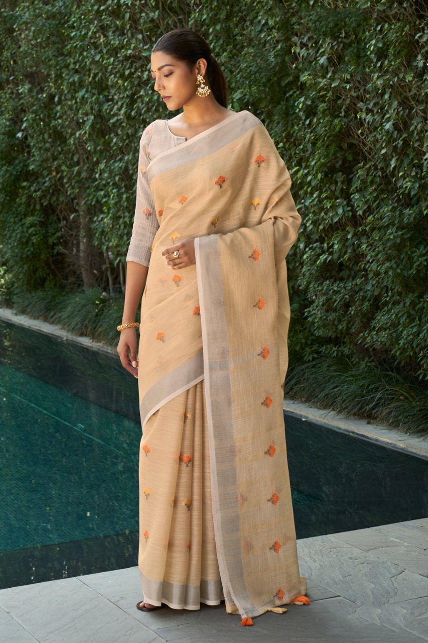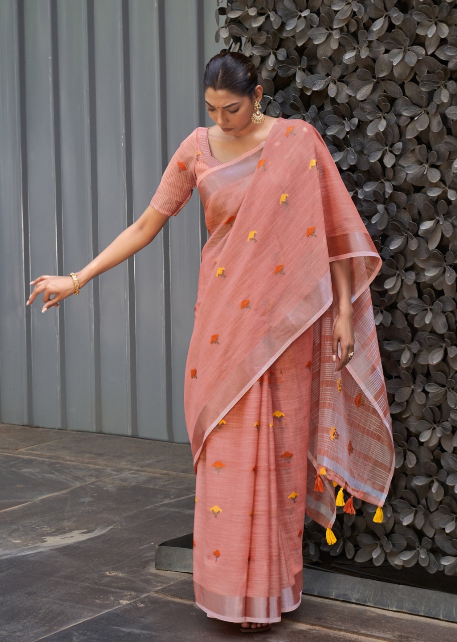 *_New Catalog Launching_* Catalog Name: *_Ameera_* Brand: *_Sangam Prints_* Product Type: Saree Fabric: Linen Price Per Piece: 985/- Gst Extra: 5% Work: Thread Work Other Specifications: Tassel Saree Saree Mtr: 5.5 Mtr Blouse: 0.8 Mtr Total Pcs: 8 *_Book your orders now_* Single 1085+gst |