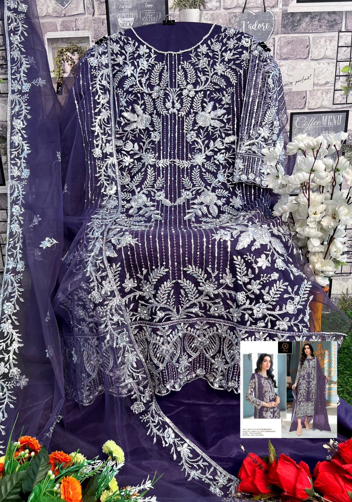 Amena B D No 108 A Heavy Net Embroidery Sequence Work Pakistani Suits