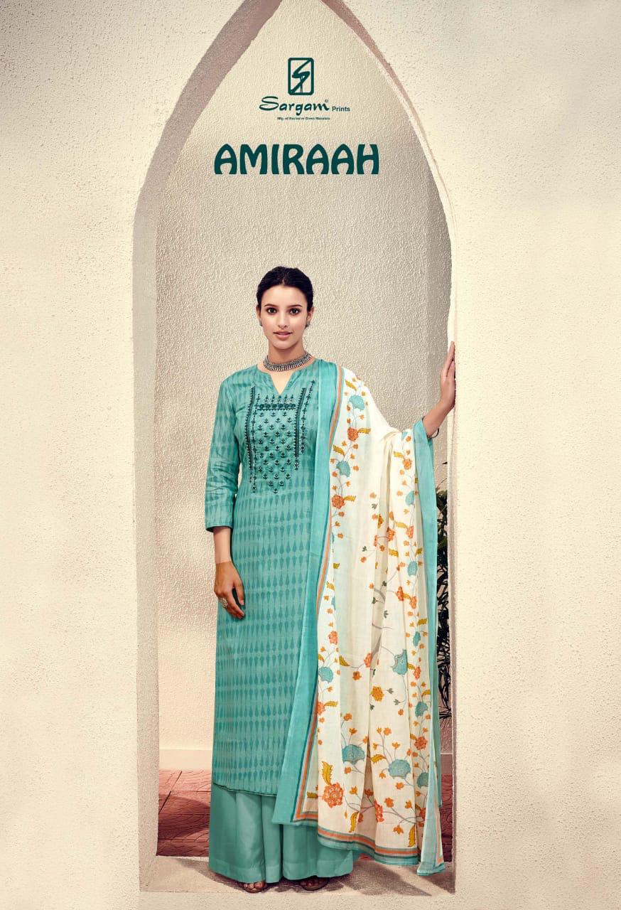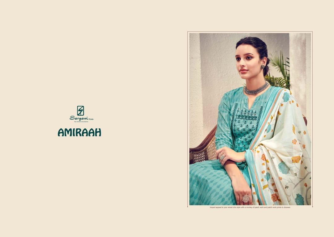 Buy Online Amiraah By Sargam Prints Cotton Designer Suits Wholesale Supplier Surat 8 Pcs of Full Catalogue at Wholesale Price. Looking for Amiraah By Sargam Prints Cotton Designer Suits Wholesale Supplier Surat Full Catalouge at Best Price? Buy Now Amiraah By Sargam Prints Cotton Designer Suits Wholesale Supplier Surat at Wholesale Rate of Rs 5560 with Total 8 Pcs from authroized dealer and supplier of SARGAM PRINTS Brand. Cost of Each piece is just only Rs 695 which is very low and affordable price to resale the product in your retail store ,This is Surat based Wholesale Supplier & Dealer of SARGAM PRINTS Brand. Click on Brand name to Know more about SARGAM PRINTS Brand's products.Call or Whatsapp on 9898838984 for booking or enquiry