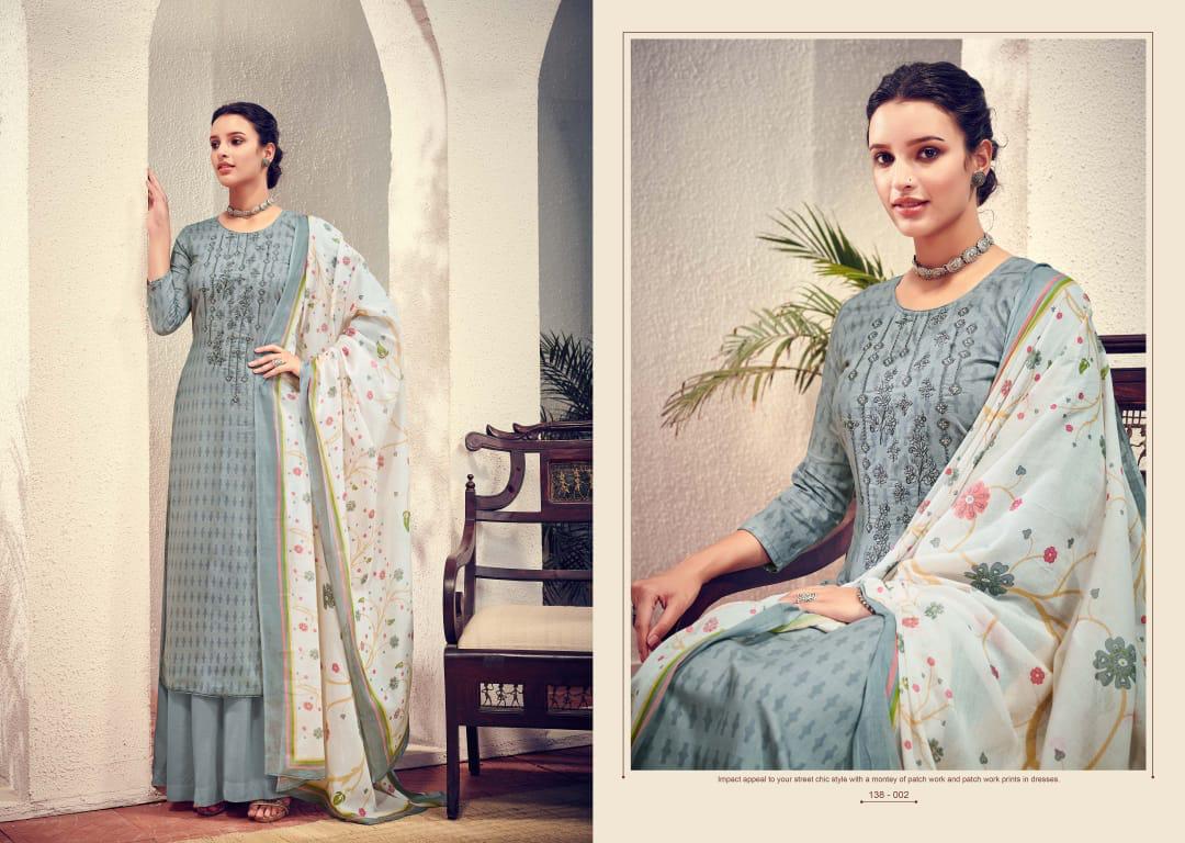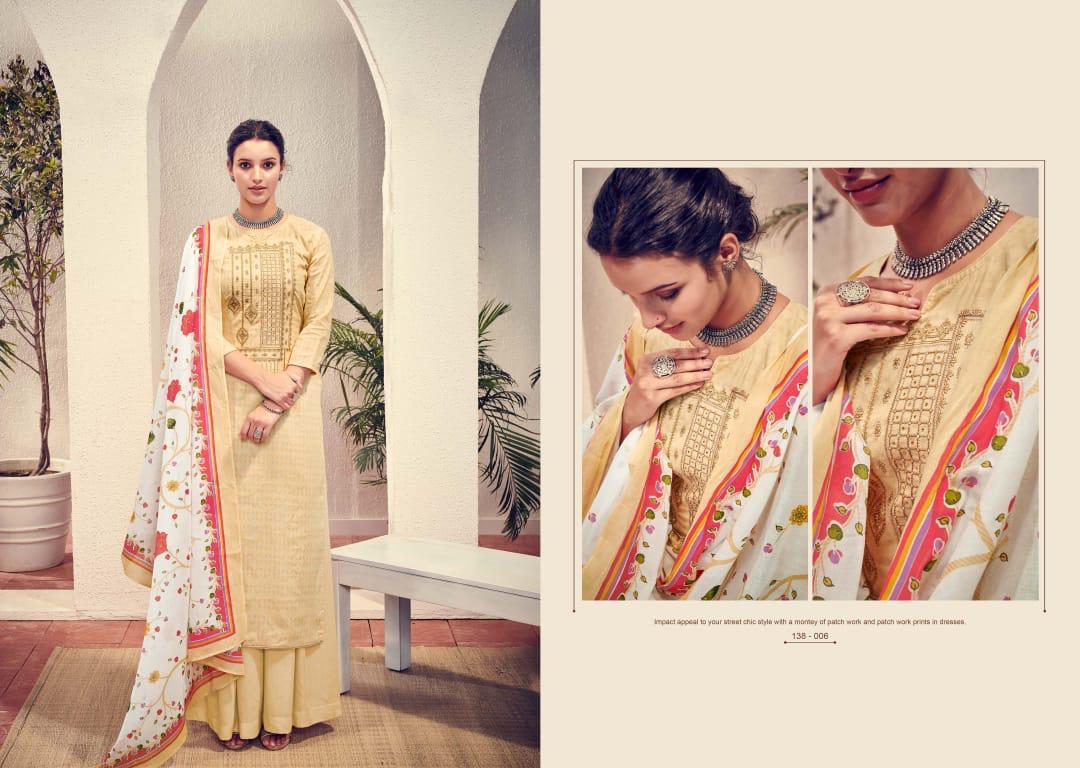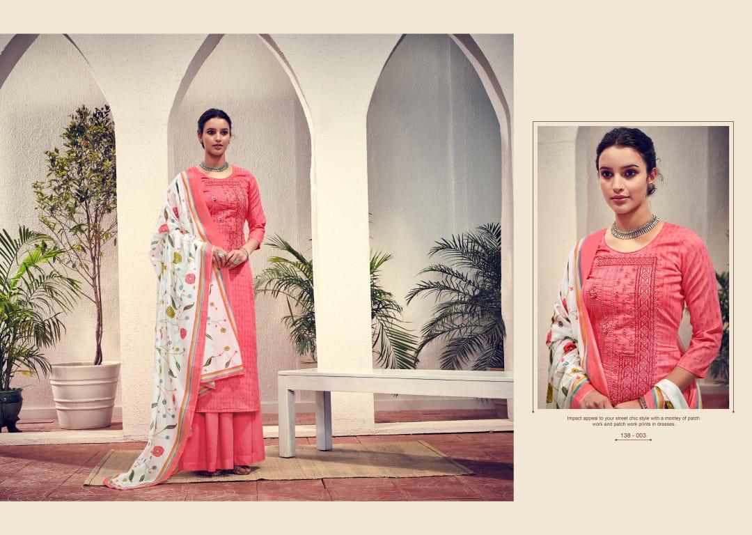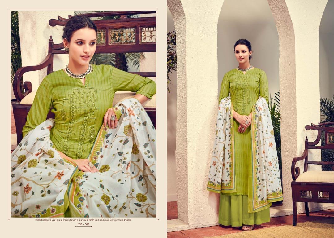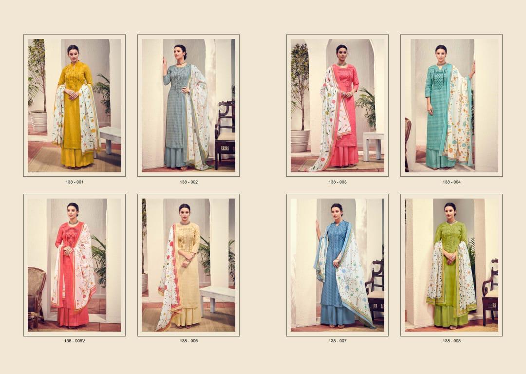 SARGAM PRINTS Presents ***AMIRAAH*** *?Fabric Details?* *Top:* PURE COTTON WITH DESIGNER WORK Bottom :SOFT COTTON *Dupatta:* PURE PRINTED MALMAL(BOX) *Designs:* 8 PCS *Rate:* ?695 *HSN CODE:* 5407 GST 5 Percent Extra |