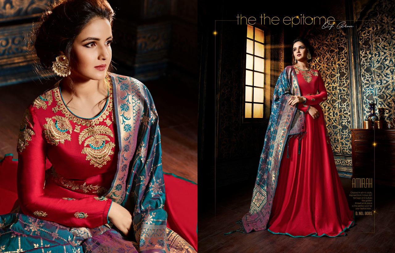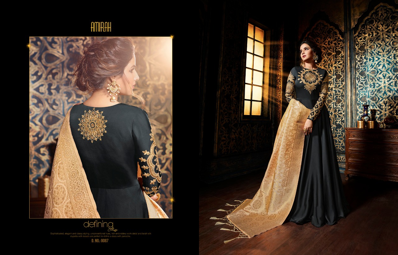 *"AMIRAH"*_ BRAND CREATED BY YOU..... *Â?FANTASTIC SARTIN GEORGET HEVY ANAR KALI WITH BANARASI DUPPTA COLLECTION"* It is a Brand Synonymous with Sophistication and Style it is for the Women of today,who prefers to make a Statement whenever she step out. So that's the time we launched our most demanded hevy dupatta concept *Designer Hevy Anar kali georget* collection of 4 designs....... *..." *?AMIRAH VOL. 10?*"... *HIT-LIST* ?Quality Fabrics... *No.1* ?Best Designs.... ?Latest Colours.... ?Rich Combinations.... @ unbelievable price, Fabric Details:- ? Top : - sartin Jorjett with hevy Embroidery and additional hand work and diamond.Flair 8 MTR Inner :- Hevy Santoon Bottam - Havy dull santon cut 2:50 mtr ??Dup. : *Banarsi* Big Panna Â?36Â? ? *Billing Rate:1495/- *ADD:- G.s.t* *Website~ www.amirah.in Have a look to this awesome catalogue & book your orders...and thanks for ur support hope u always with us. Always with you...... Nitya nx |