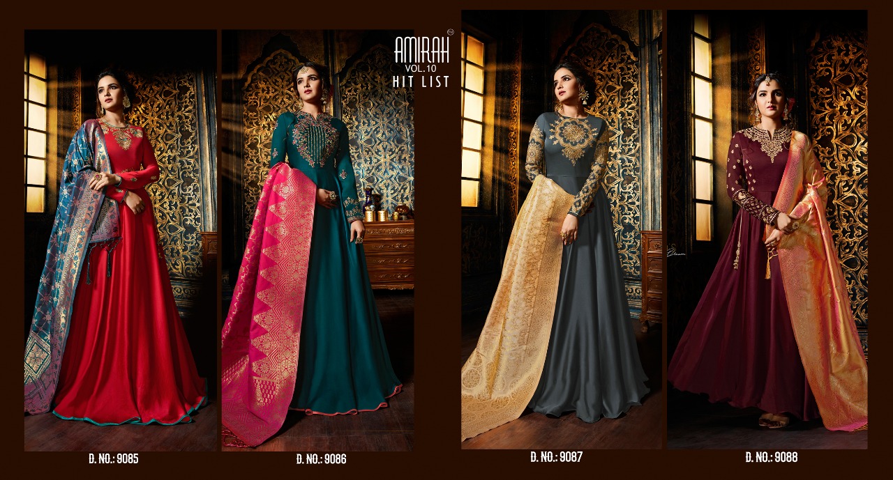 Amirah Vol 10 Hit List By Amirah Silk Georgette Heavy Designer Anarkali Gowns Wholesale Supplier And Dealer Gujarat