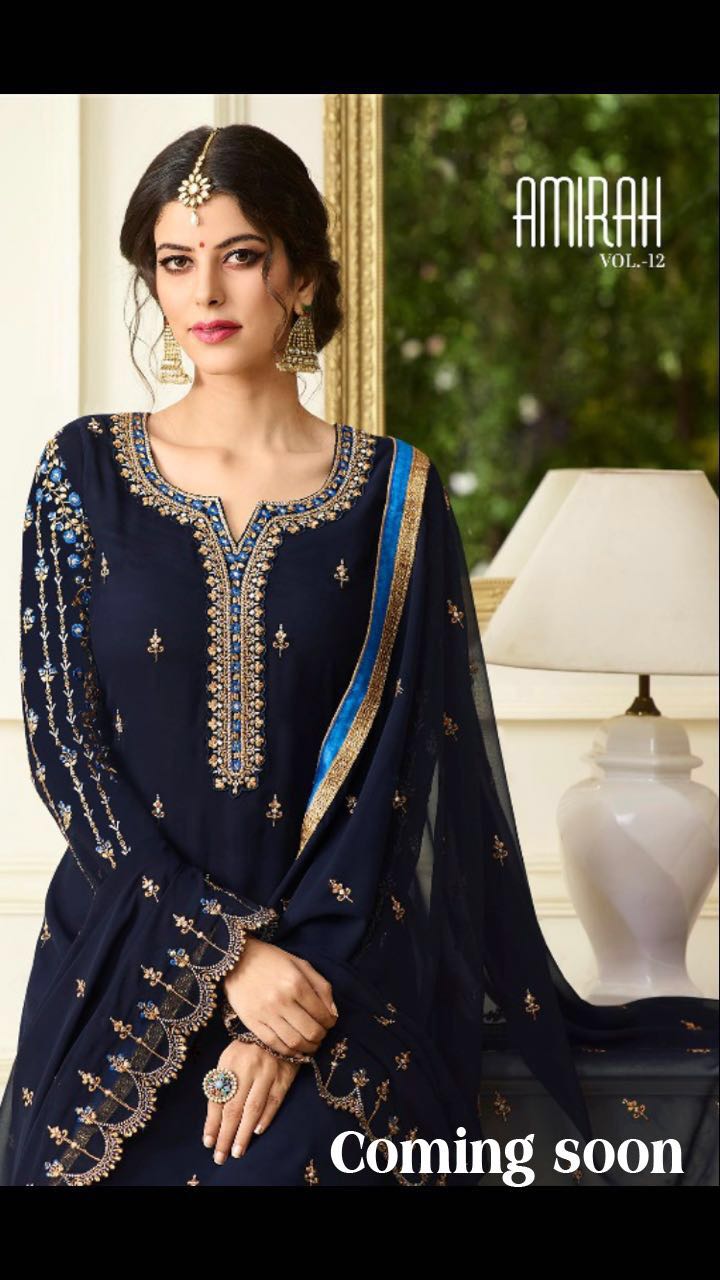 *"AMIRAH"*_ BRAND CREATED BY YOU..... *Â?FANTASTIC GEORGET HEVY DUPATTA COLLECTION"* It is a Brand Synonymous with Sophistication and Style it is for the Women of today,who prefers to make a Statement whenever she step out. So that's the time we launched our most demanded hevy dupatta concept *Designer Hevy Dupatta Style on faux georget* collection of 8 *?AMIRAH ?* *VOL-12* * Faux georget top & dupatta both hevy embroided * ?Quality Fabrics... *No.1* ?Best Designs.... ?Latest Colours.... ?Rich Combinations.... @ unbelievable price, Fabric Details:- ? Top : - Faux georget hevy Embroidery and additional hand work and diamond. ? Inner & Bottom :- Hevy Dull Shantoon ??Dup. : - Faux georget with hevy embroidery work. cut:- 2.25 mtr app ? *Billing Rate:- 1495/- GST 5 Percent Extra. Delivery date - 25-08-18. Book your order Have a look to this awesome catalogue & book your orders...and thanks for ur support hope u always with us. Always with you...... Team:- Amirah....,,,, |