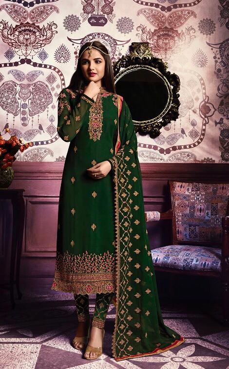 *"AMIRAH"*_ BRAND CREATED BY YOU..... *Â?FANTASTIC GEORGET HEVY DUPATTA & BOTTAM WORK COLLECTION"* It is a Brand Synonymous with Sophistication and Style it is for the Women of today,who prefers to make a Statement whenever she step out. So that's the time we launched our most demanded hevy dupatta concept *Designer Hevy Dupatta Style on faux georget* collection of 8 *?AMIRAH ?* *VOL-14* * Faux georget top & dupatta both hevy embroided * *BOTTOM WORK * ?Quality Fabrics... *No.1* ?Best Designs.... ?Latest Colours.... ?Rich Combinations.... @ unbelievable price, Fabric Details:- ? Top : - Faux georget hevy Embroidery and additional hand work and diamond. ? Inner & Bottom :- Hevy Dull Shantoon with Embrodery work & Hand Work ??Dup. : - Faux georget with hevy embroidery work. cut:- 2.25 mtr app ? *Billing Rate:- 1495 per Pcs . GST 5 Percent Extra *Website~ www.amirah.in Have a look to this awesome catalogue & book your orders...and thanks for ur support hope u always with us. Always with you...... Team:- Amirah....,,,, Set to set . GST 5 Percent Extra. Delivery after 6-7 days . Book your order now . |