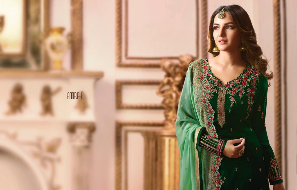 *"AMIRAH"*_ BRAND CREATED BY YOU..... *Â?FANTASTIC SATIN JORJET WITH HEVY DUPATTA & BOTTAM WORK COLLECTION"* *?AMIRAH ?* *VOL-27* * Satin Jorjet top & dupatta both hevy embroided * *BOTTOM WORK * ?Quality Fabrics... *No.1* Fabric Details:- ? Top : - Satin Jorjet With hevy Embroidery Work and additional hand work and diamond. ? Inner &:- Hevy Dull Shantoon BOTAM:-Dull Santoon With Embrodery work & Hand Work ??Dup. : - Faux georget with hevy embroidery work. cut:- 2.25 mtr app ? *Rate:- 1595/- ??? to set . GST 5 Percent Extra. Delivery 5-6 days *ADD:- G.s.t* |