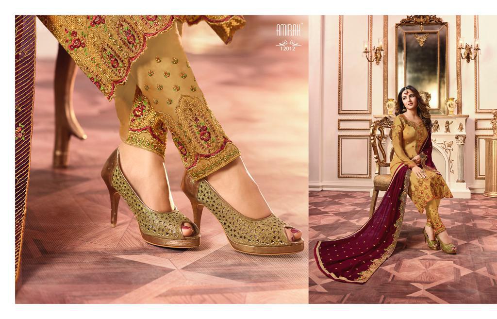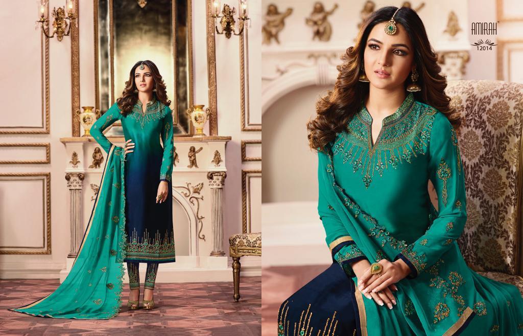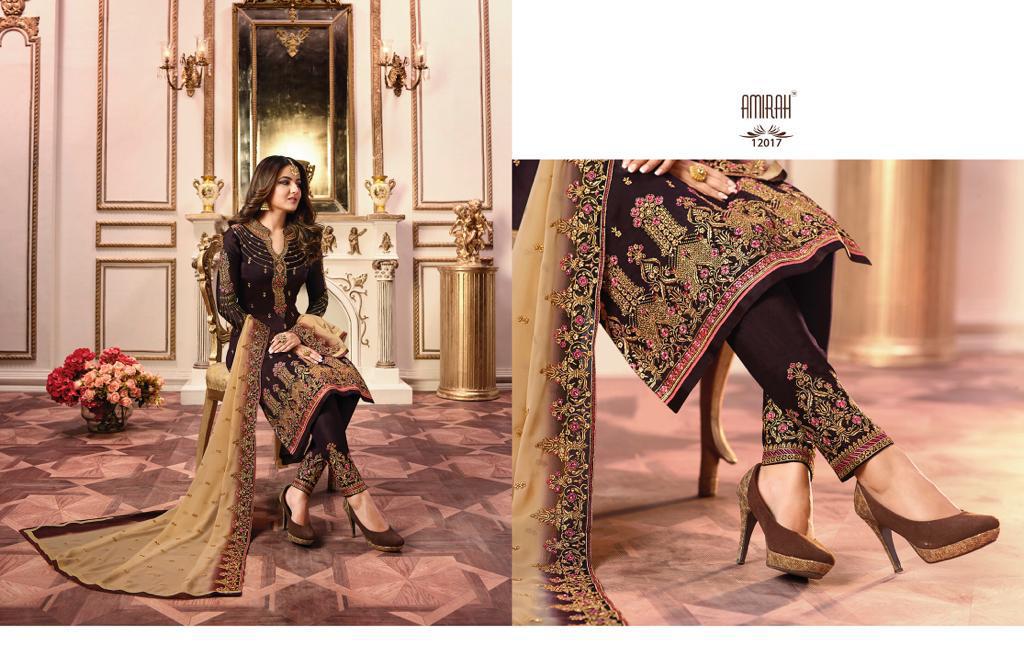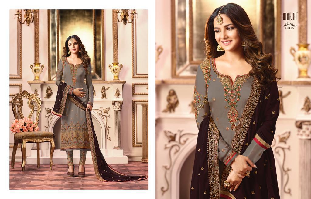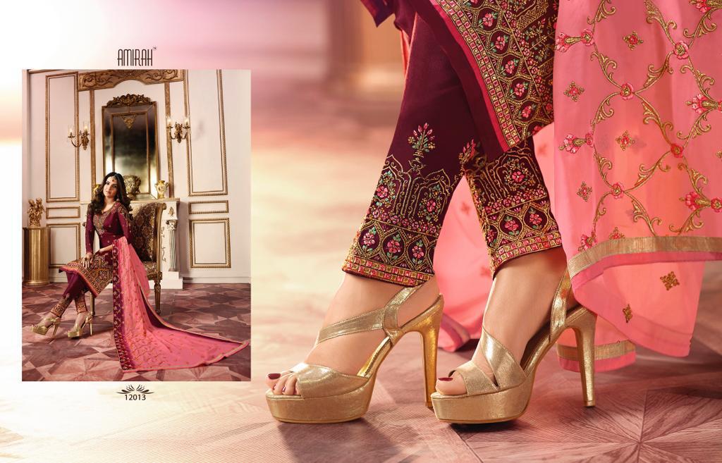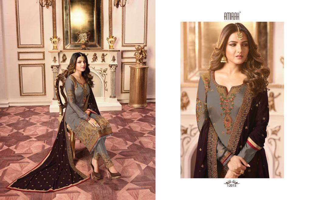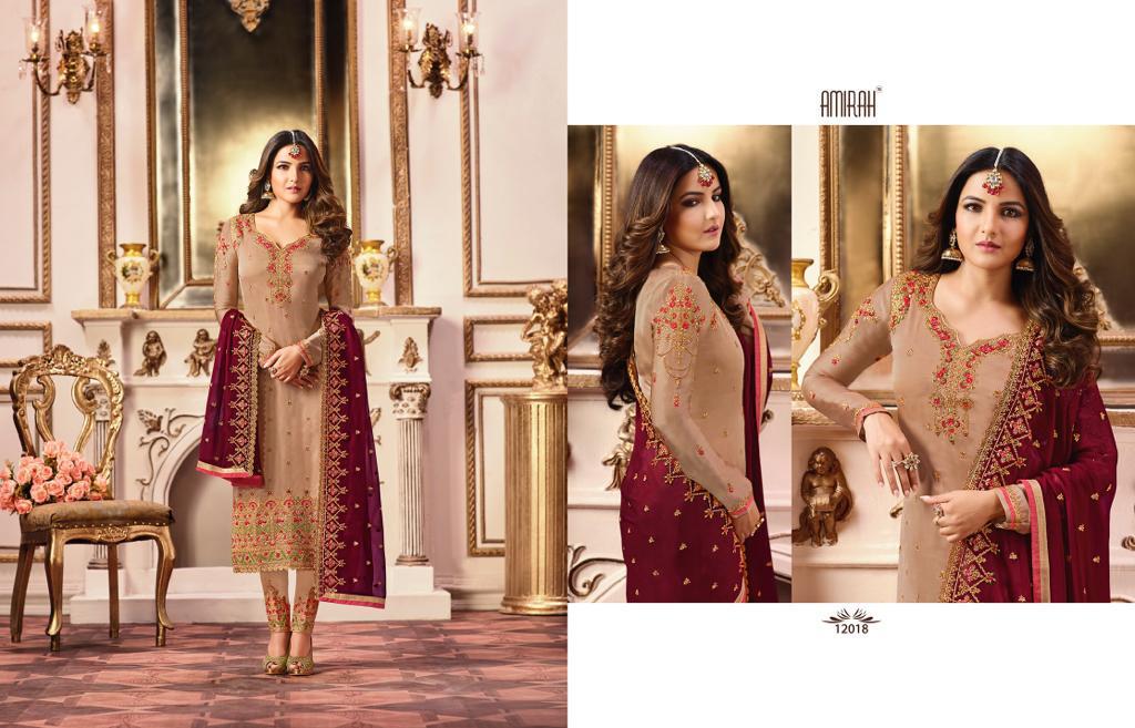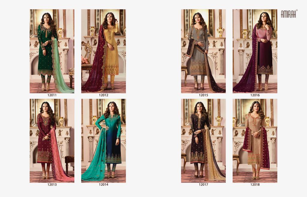 Buy Online Amirah Vol 27 Series 12011 To 12018 Georgette Embroidered Designer Suits Wholesale Supplier Gujarat 8 Pcs of Full Catalogue at Wholesale Price. Looking for Amirah Vol 27 Series 12011 To 12018 Georgette Embroidered Designer Suits Wholesale Supplier Gujarat Full Catalouge at Best Price? Buy Now Amirah Vol 27 Series 12011 To 12018 Georgette Embroidered Designer Suits Wholesale Supplier Gujarat at Wholesale Rate of Rs 12760 with Total 8 Pcs from authroized dealer and supplier of Amirah Brand. Cost of Each piece is just only Rs 1595 which is very low and affordable price to resale the product in your retail store ,This is Surat based Wholesale Supplier & Dealer of Amirah Brand. Click on Brand name to Know more about Amirah Brand's products.Call or Whatsapp on 9898838984 for booking or enquiry