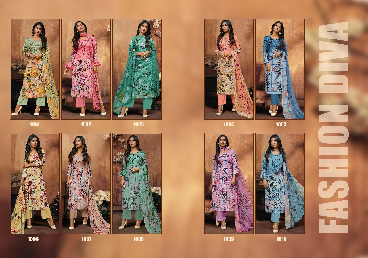 Amora By Kesar 1001 Series Fancy Pure Cambric Cotton Printed Salwar Kameez Catlog Wholesaler Surat