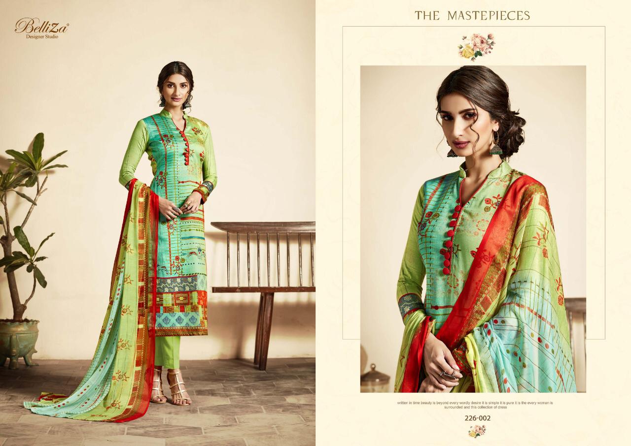 _*......BelliZa DesigNer StuDio......*_ _presents_ *Â?AMORAÂ?* _...evergreen collection..._ *Exclusive Summer Collection* _Vol-30_ ?Top: 100% Pure Original Heavy Jam Silk Digital style Print (2.50 mtrs) ?Dupatta: Exclusive Printed chiffon dupatta with four side lace. (2.30 mtr) ?Bottom: pure cotton (3 mtrs) ?Pcs: 10 ? Rate: 495/- (Applicable GST extra) |