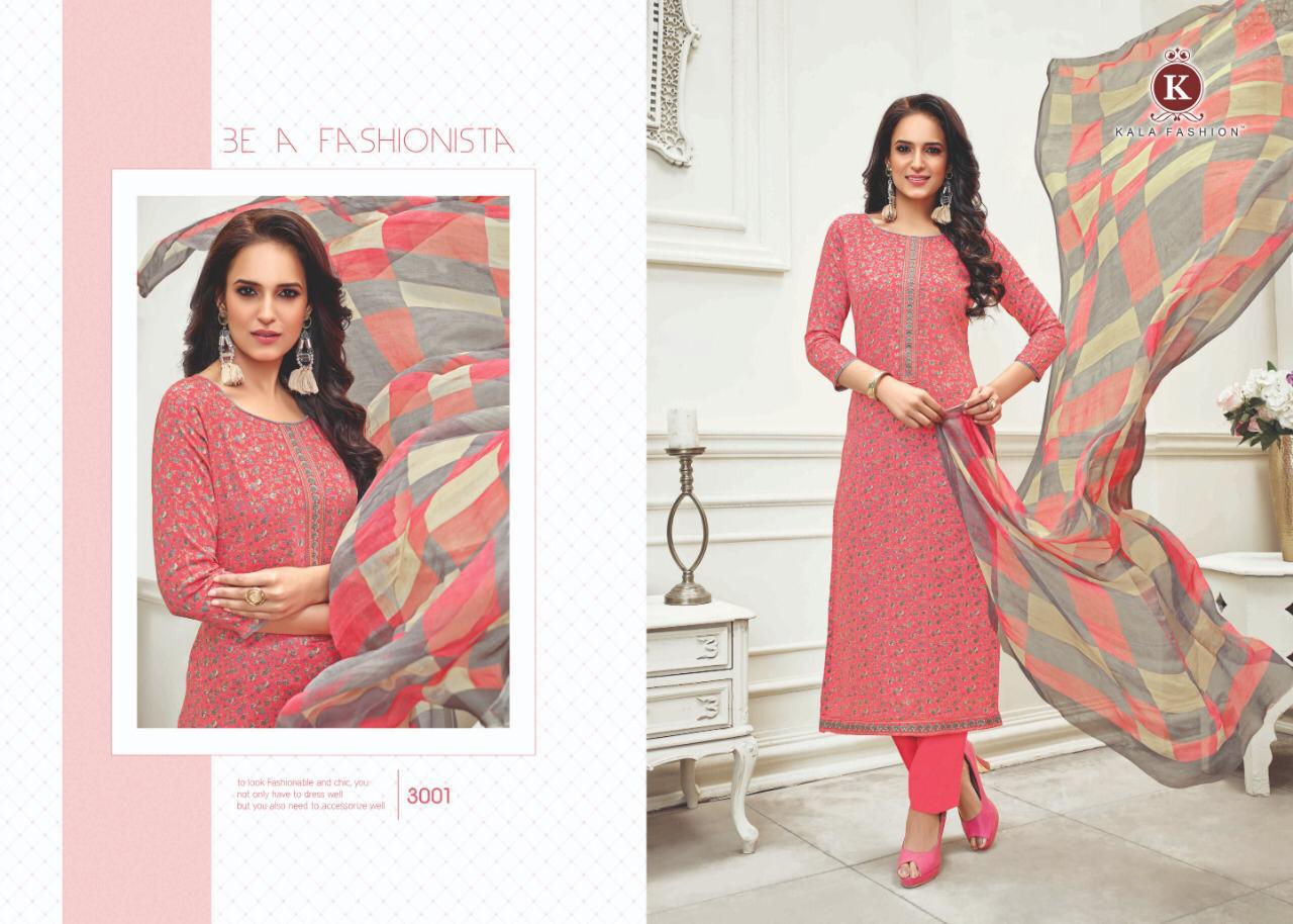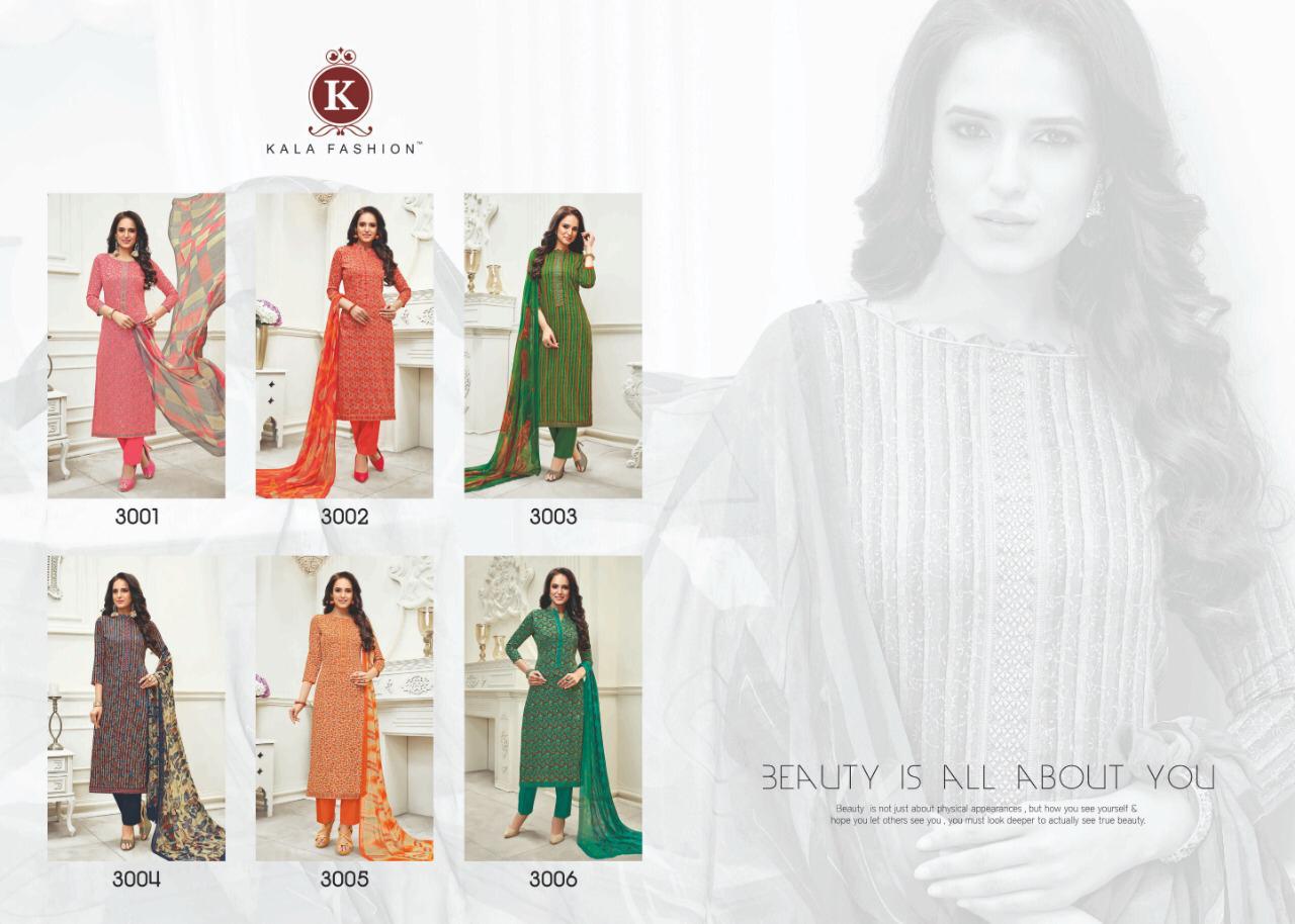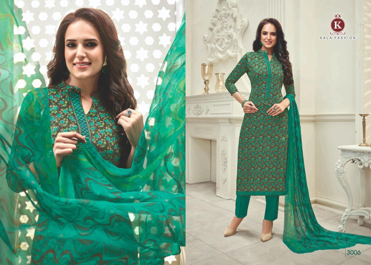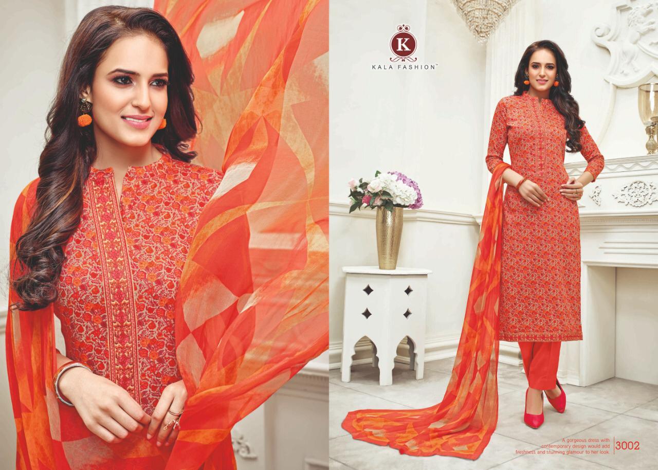 Buy Online Amore By Kala Fashion 3001 Series Fancy Jam Satin Printed Salwar Kameez Catlog Wholesaler Surat 6 Pcs of Full Catalogue at Wholesale Price. Looking for Amore By Kala Fashion 3001 Series Fancy Jam Satin Printed Salwar Kameez Catlog Wholesaler Surat Full Catalouge at Best Price? Buy Now Amore By Kala Fashion 3001 Series Fancy Jam Satin Printed Salwar Kameez Catlog Wholesaler Surat at Wholesale Rate of Rs 5376 with Total 6 Pcs from authroized dealer and supplier of KALA FASHIONS Brand. Cost of Each piece is just only Rs 896 which is very low and affordable price to resale the product in your retail store ,This is Surat based Wholesale Supplier & Dealer of KALA FASHIONS Brand. Click on Brand name to Know more about KALA FASHIONS Brand's products.Call or Whatsapp on 9898838984 for booking or enquiry