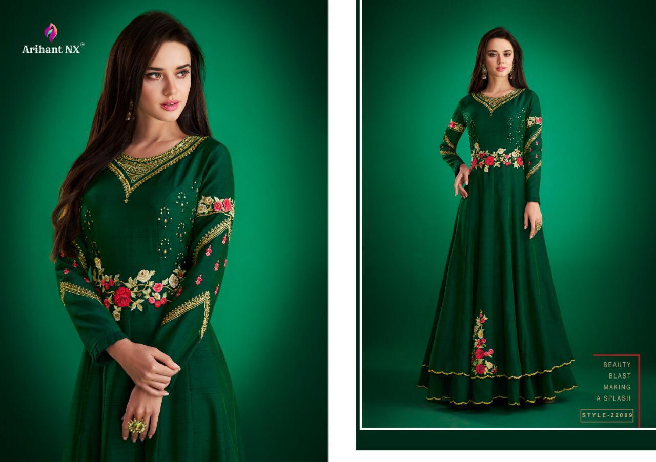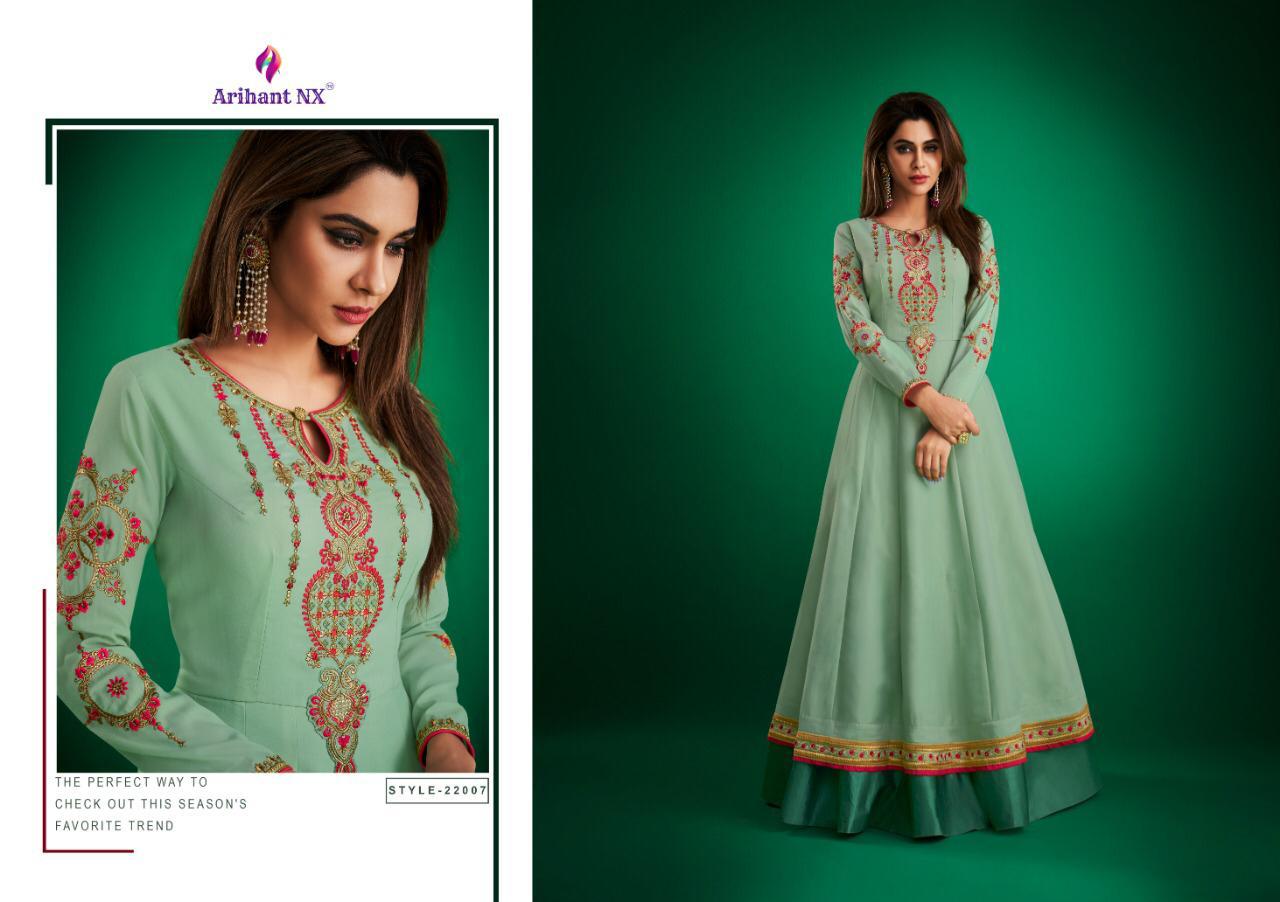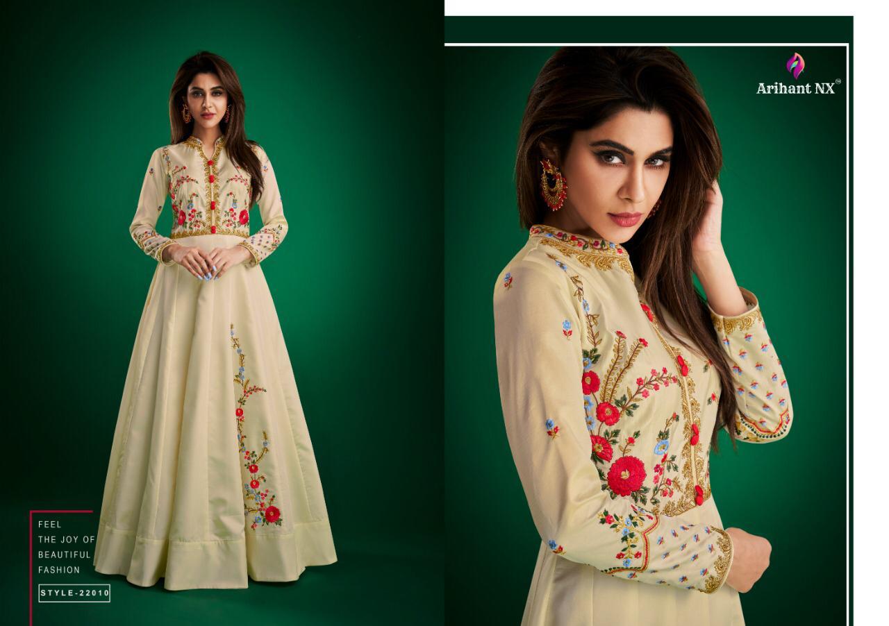 Buy Online Amorina Vol 2 By Arihant Nx Series 22006 To 22010 Masline Slub Designer Party Wear Gowns Wholesale Supplier Gujarat 5 Pcs of Full Catalogue at Wholesale Price. Looking for Amorina Vol 2 By Arihant Nx Series 22006 To 22010 Masline Slub Designer Party Wear Gowns Wholesale Supplier Gujarat Full Catalouge at Best Price? Buy Now Amorina Vol 2 By Arihant Nx Series 22006 To 22010 Masline Slub Designer Party Wear Gowns Wholesale Supplier Gujarat at Wholesale Rate of Rs 6475 with Total 5 Pcs from authroized dealer and supplier of ARIHANT NX Brand. Cost of Each piece is just only Rs 1295 which is very low and affordable price to resale the product in your retail store ,This is Surat based Wholesale Supplier & Dealer of ARIHANT NX Brand. Click on Brand name to Know more about ARIHANT NX Brand's products.Call or Whatsapp on 9898838984 for booking or enquiry