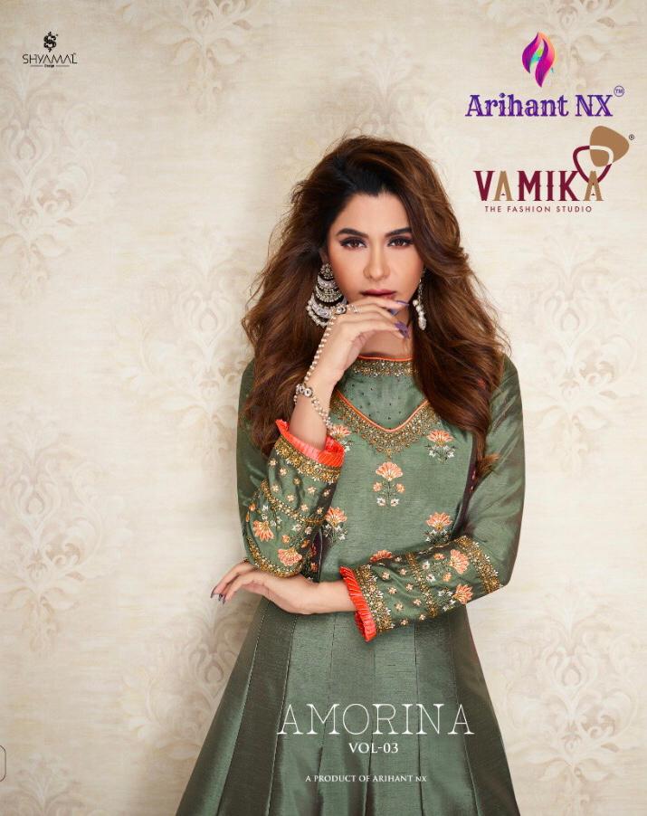Buy Online Amorina Vol 3 By Arihant Nx Series 22011 To 22015 Silk Designer Party Wear Gowns Wholesale Supplier India 5 Pcs of Full Catalogue at Wholesale Price. Looking for Amorina Vol 3 By Arihant Nx Series 22011 To 22015 Silk Designer Party Wear Gowns Wholesale Supplier India Full Catalouge at Best Price? Buy Now Amorina Vol 3 By Arihant Nx Series 22011 To 22015 Silk Designer Party Wear Gowns Wholesale Supplier India at Wholesale Rate of Rs 6475 with Total 5 Pcs from authroized dealer and supplier of ARIHANT NX Brand. Cost of Each piece is just only Rs 1295 which is very low and affordable price to resale the product in your retail store ,This is Surat based Wholesale Supplier & Dealer of ARIHANT NX Brand. Click on Brand name to Know more about ARIHANT NX Brand's products.Call or Whatsapp on 9898838984 for booking or enquiry
