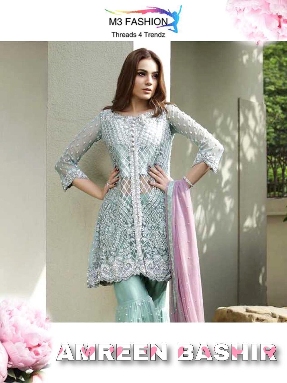 Buy Online Amreen Bashir By M3 Fashion 0050 Colours Fancy Pakistani Style Salwar Kameez Catlog Wholesale Dealer Surat 4 Pcs of Full Catalogue at Wholesale Price. Looking for Amreen Bashir By M3 Fashion 0050 Colours Fancy Pakistani Style Salwar Kameez Catlog Wholesale Dealer Surat Full Catalouge at Best Price? Buy Now Amreen Bashir By M3 Fashion 0050 Colours Fancy Pakistani Style Salwar Kameez Catlog Wholesale Dealer Surat at Wholesale Rate of Rs 5036 with Total 4 Pcs from authroized dealer and supplier of Brand. Cost of Each piece is just only Rs 1259 which is very low and affordable price to resale the product in your retail store ,This is Surat based Wholesale Supplier & Dealer of Brand. Click on Brand name to Know more about Brand's products.Call or Whatsapp on 9898838984 for booking or enquiry