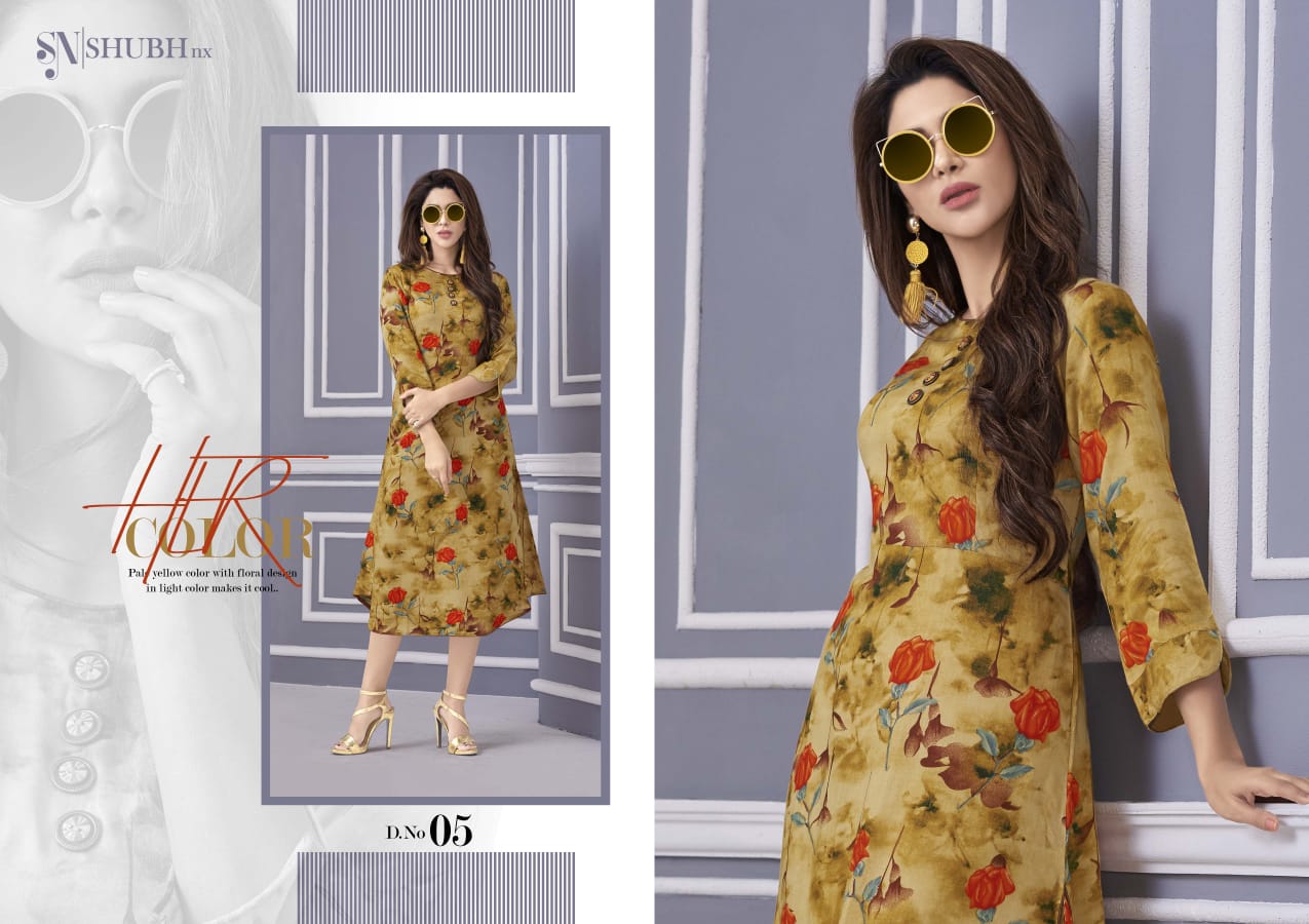 Amreen By Shubh Nx Reyon Printed Kurtis Wholesale Supplier And Dealer Gujarat