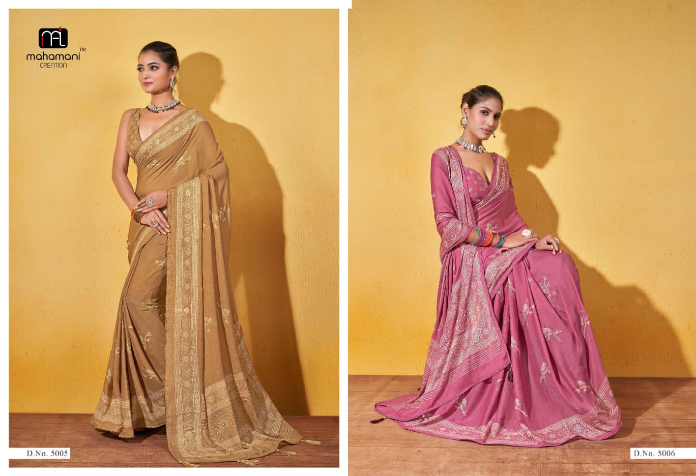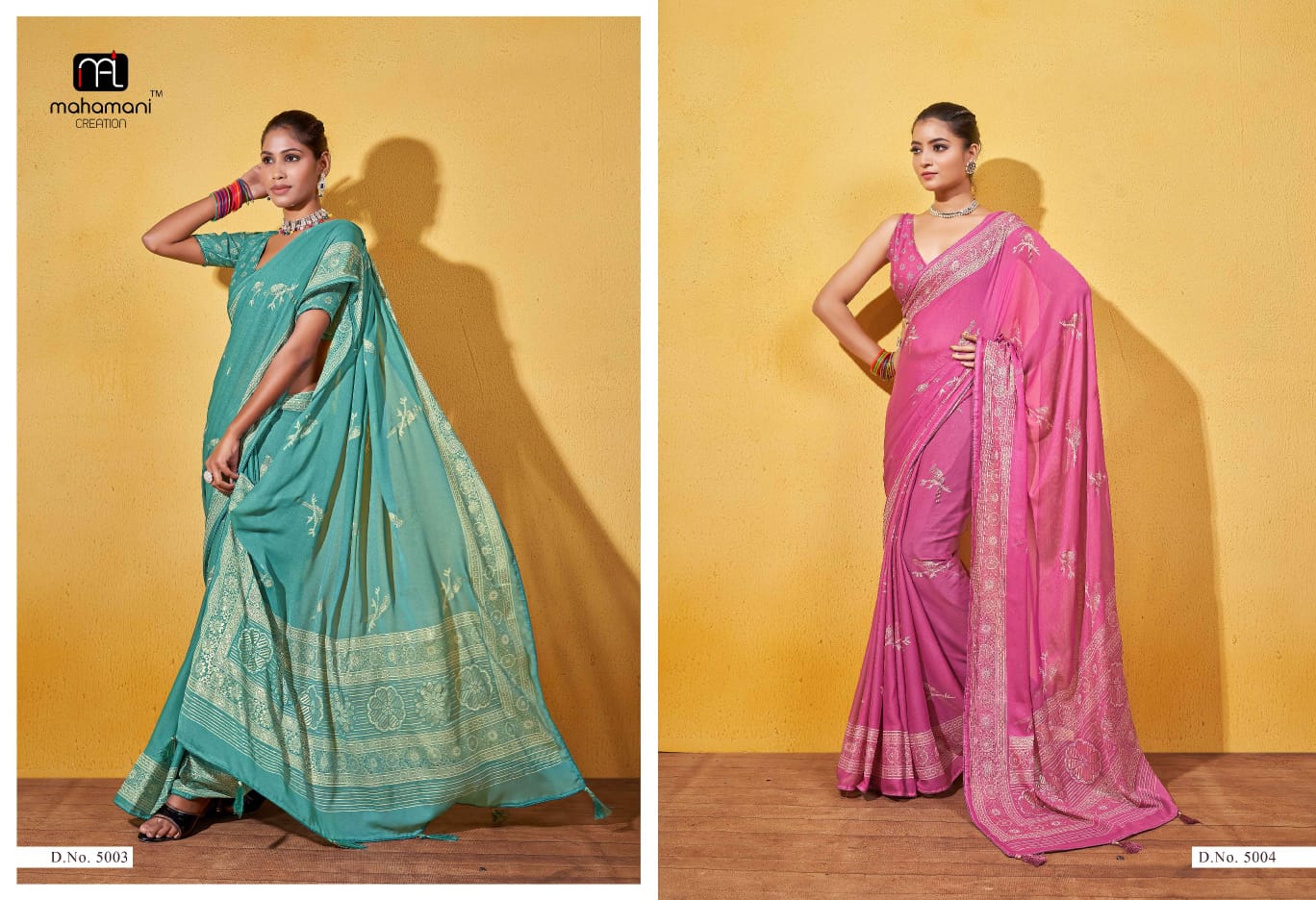 Buy Online Amrita Vol 5 Series 5001 To 5006 By Mahamani 6 Pcs of Full Catalogue at Wholesale Price. Looking for Amrita Vol 5 Series 5001 To 5006 By Mahamani Full Catalouge at Best Price? Buy Now Amrita Vol 5 Series 5001 To 5006 By Mahamani at Wholesale Rate of Rs 3750 with Total 6 Pcs from authroized dealer and supplier of Brand. Cost of Each piece is just only Rs 625 which is very low and affordable price to resale the product in your retail store ,This is Surat based Wholesale Supplier & Dealer of Brand. Click on Brand name to Know more about Brand's products.Call or Whatsapp on 9898838984 for booking or enquiry