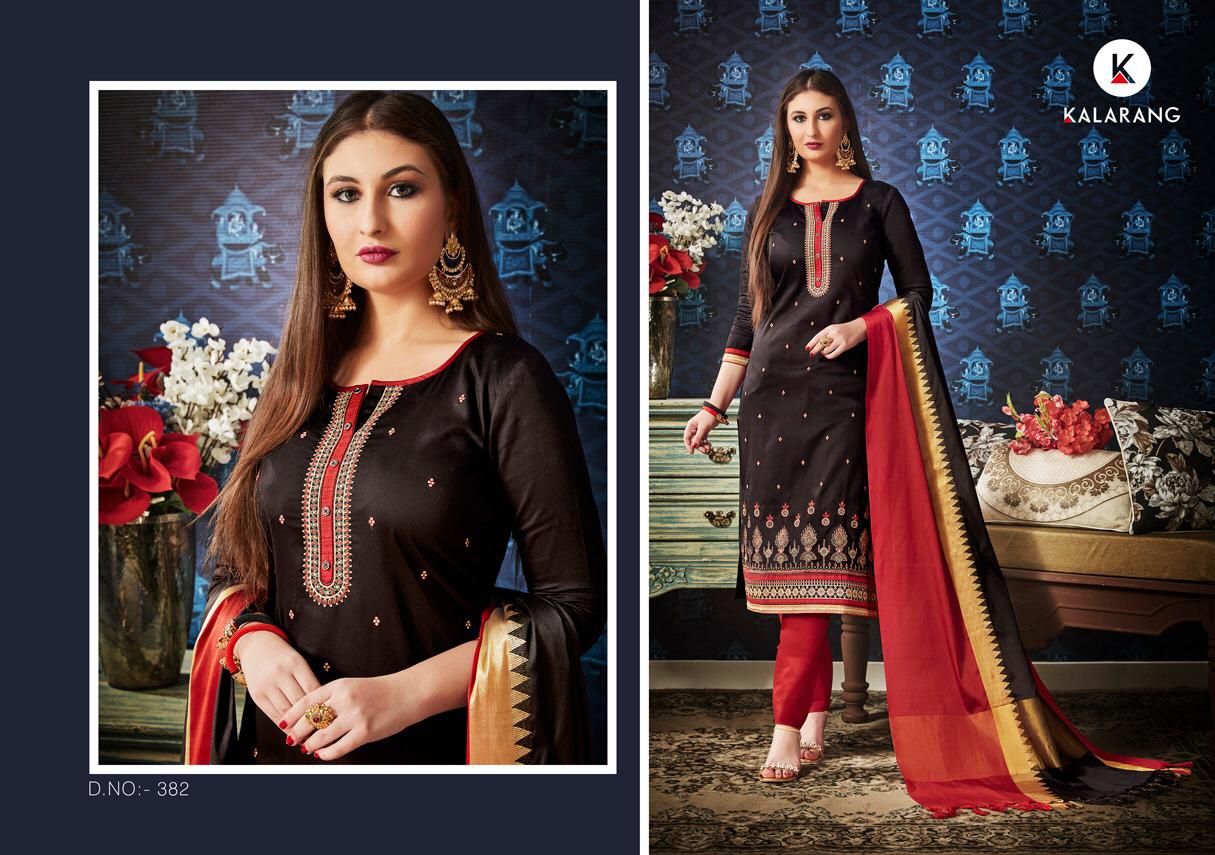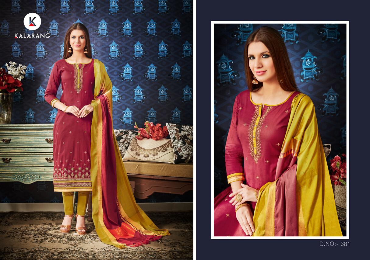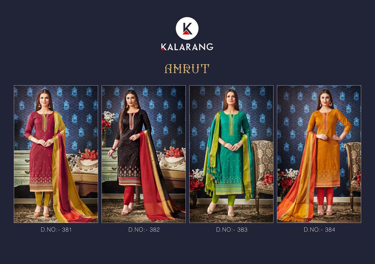 Buy Online Amrut By Kalarang 381 Series Fancy Pure Jam Silk Cotton Salwar Kameez Catlog Wholesale Dealer Surat 4 Pcs of Full Catalogue at Wholesale Price. Looking for Amrut By Kalarang 381 Series Fancy Pure Jam Silk Cotton Salwar Kameez Catlog Wholesale Dealer Surat Full Catalouge at Best Price? Buy Now Amrut By Kalarang 381 Series Fancy Pure Jam Silk Cotton Salwar Kameez Catlog Wholesale Dealer Surat at Wholesale Rate of Rs 3300 with Total 4 Pcs from authroized dealer and supplier of KALARANG Brand. Cost of Each piece is just only Rs 825 which is very low and affordable price to resale the product in your retail store ,This is Surat based Wholesale Supplier & Dealer of KALARANG Brand. Click on Brand name to Know more about KALARANG Brand's products.Call or Whatsapp on 9898838984 for booking or enquiry