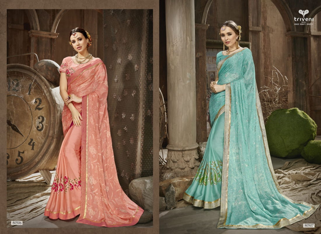 Amulya By Triveni Chaina Chiffon Sarees Wholesale Supplier And Dealer Surat