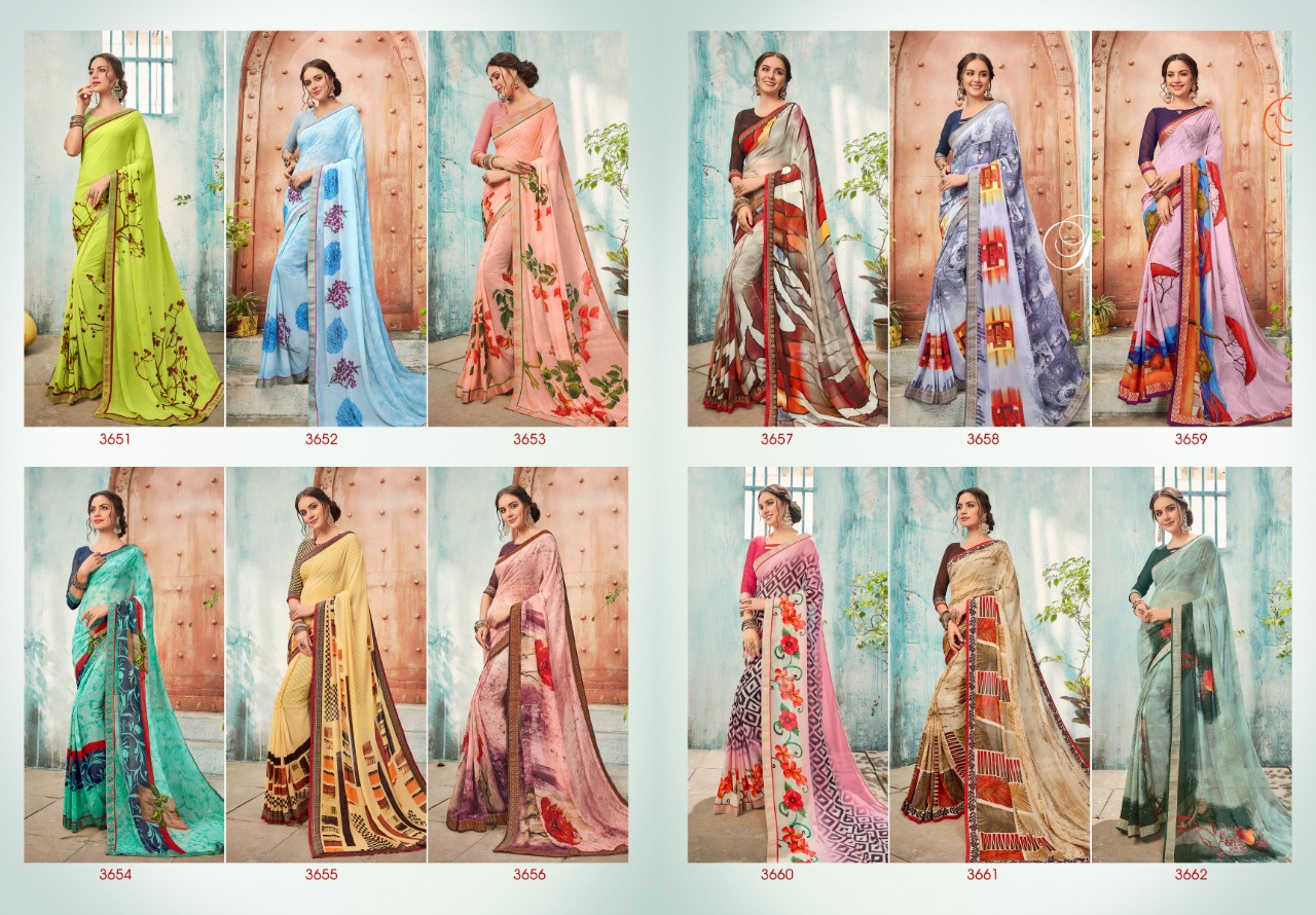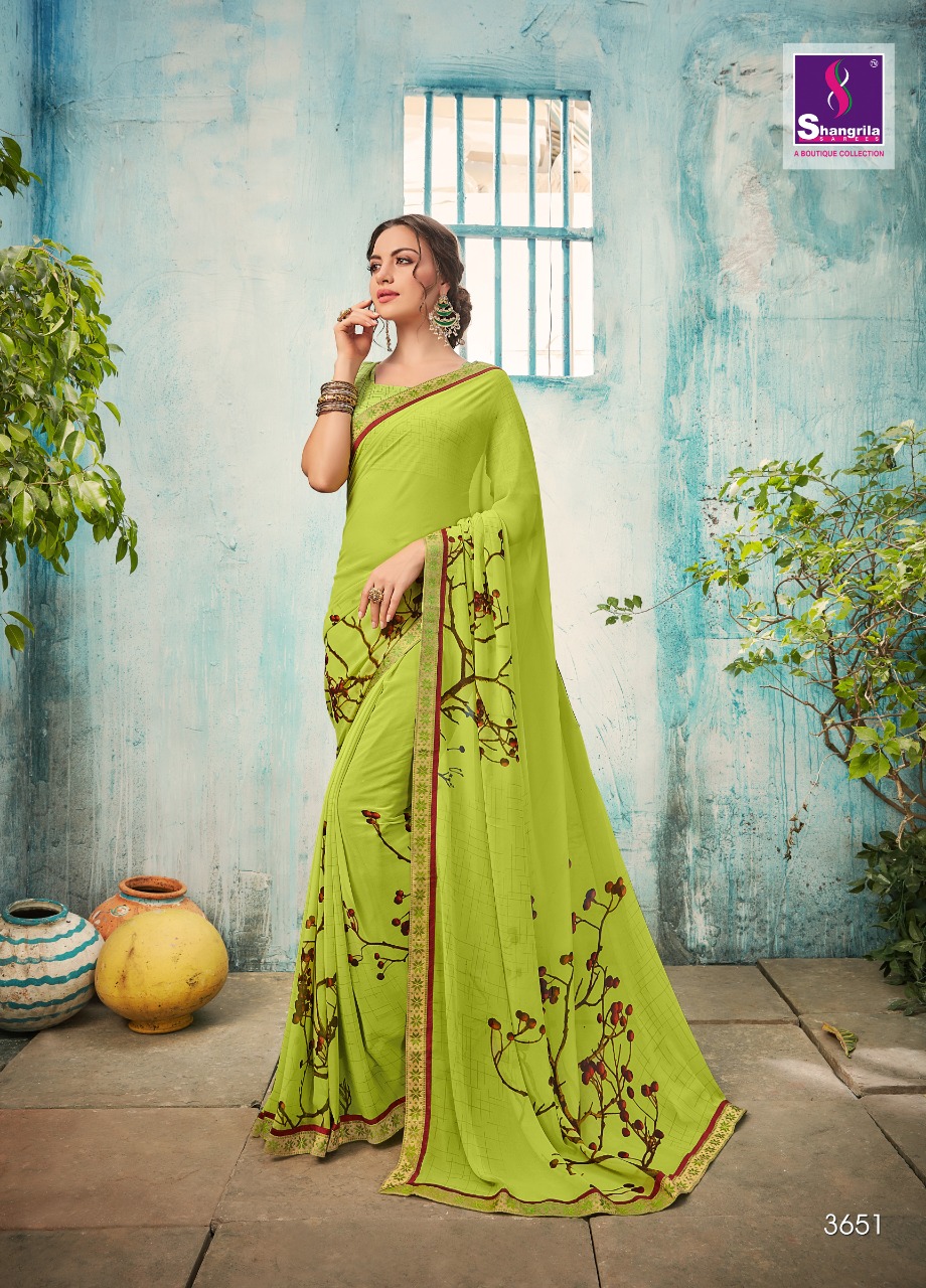 Buy Online Amyra By Shangrila 3651 Series Fancy Pure Weightless Prints Saree Catlog Wholesale Dealer Surat 12 Pcs of Full Catalogue at Wholesale Price. Looking for Amyra By Shangrila 3651 Series Fancy Pure Weightless Prints Saree Catlog Wholesale Dealer Surat Full Catalouge at Best Price? Buy Now Amyra By Shangrila 3651 Series Fancy Pure Weightless Prints Saree Catlog Wholesale Dealer Surat at Wholesale Rate of Rs 6300 with Total 12 Pcs from authroized dealer and supplier of SHANGRILA Brand. Cost of Each piece is just only Rs 525 which is very low and affordable price to resale the product in your retail store ,This is Surat based Wholesale Supplier & Dealer of SHANGRILA Brand. Click on Brand name to Know more about SHANGRILA Brand's products.Call or Whatsapp on 9898838984 for booking or enquiry