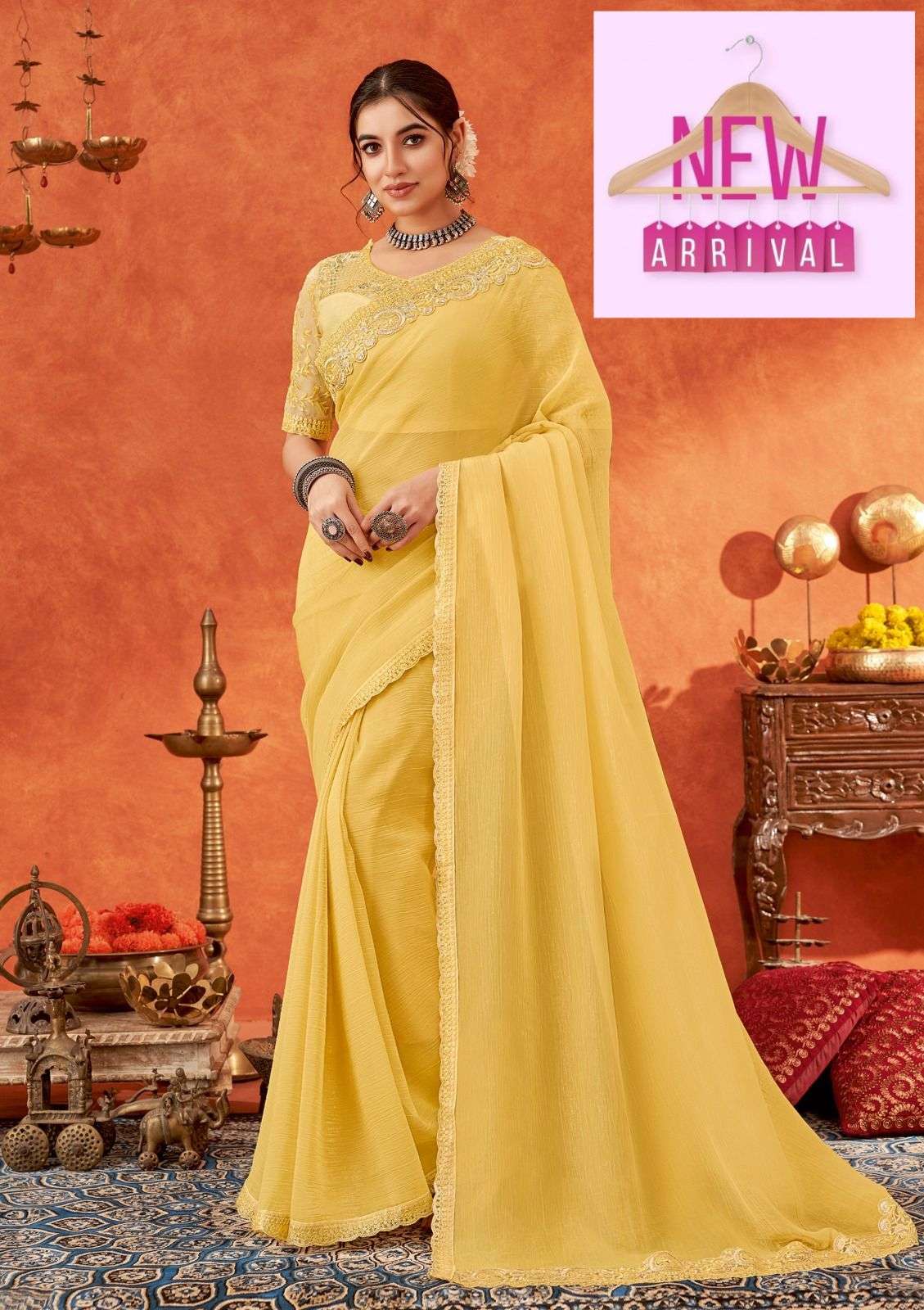 *Fabric- gold crunchy with bluming colours.* *Work heavy border & fancy heavy blouse*
