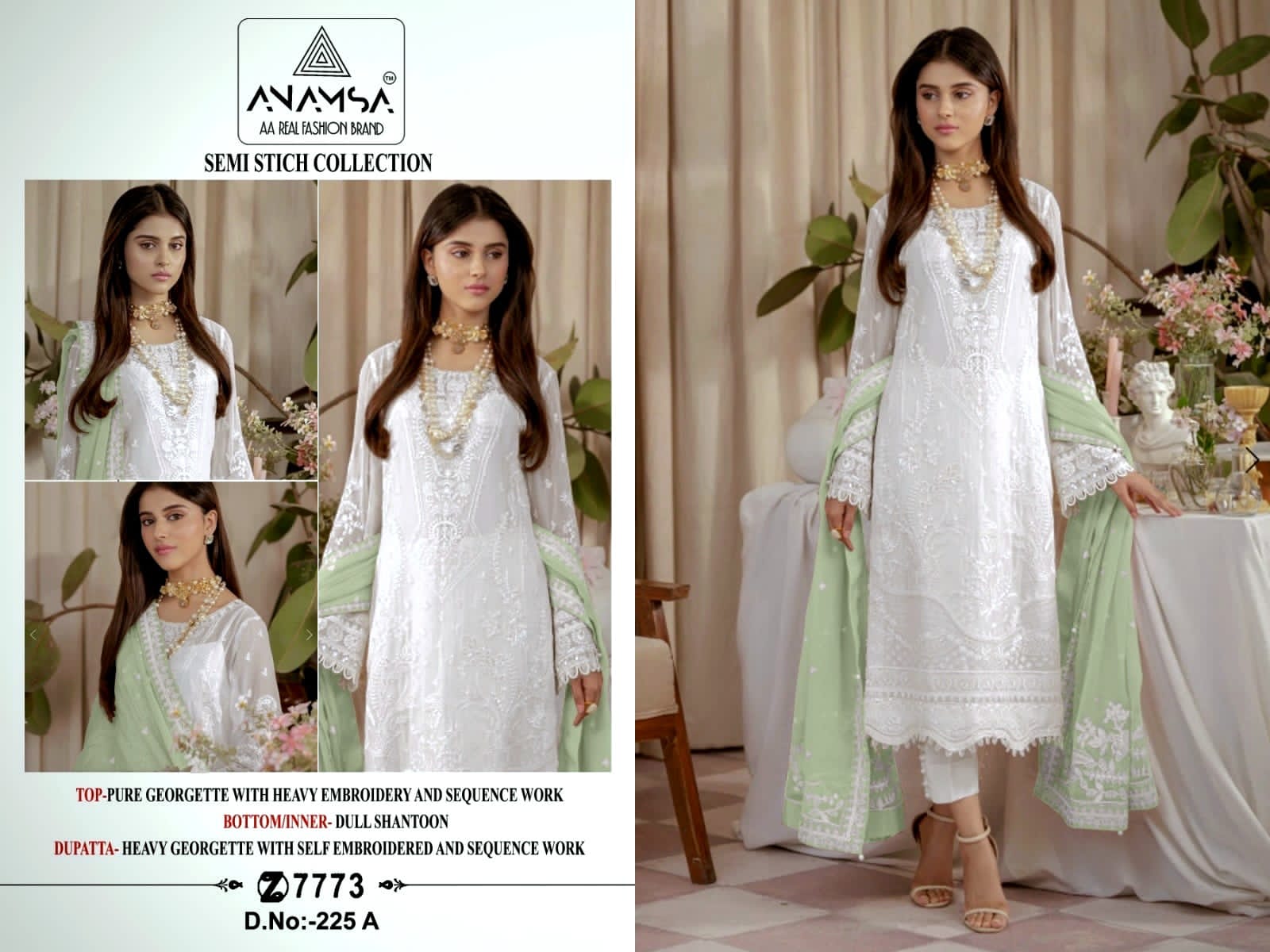 Buy Online Anamsa Hit Design No 225 Colour Georgette Pakistani Suits 4 Pcs of Full Catalogue at Wholesale Price. Looking for Anamsa Hit Design No 225 Colour Georgette Pakistani Suits Full Catalouge at Best Price? Buy Now Anamsa Hit Design No 225 Colour Georgette Pakistani Suits at Wholesale Rate of Rs 4796 with Total 4 Pcs from authroized dealer and supplier of Brand. Cost of Each piece is just only Rs 1199 which is very low and affordable price to resale the product in your retail store ,This is Surat based Wholesale Supplier & Dealer of Brand. Click on Brand name to Know more about Brand's products.Call or Whatsapp on 9898838984 for booking or enquiry