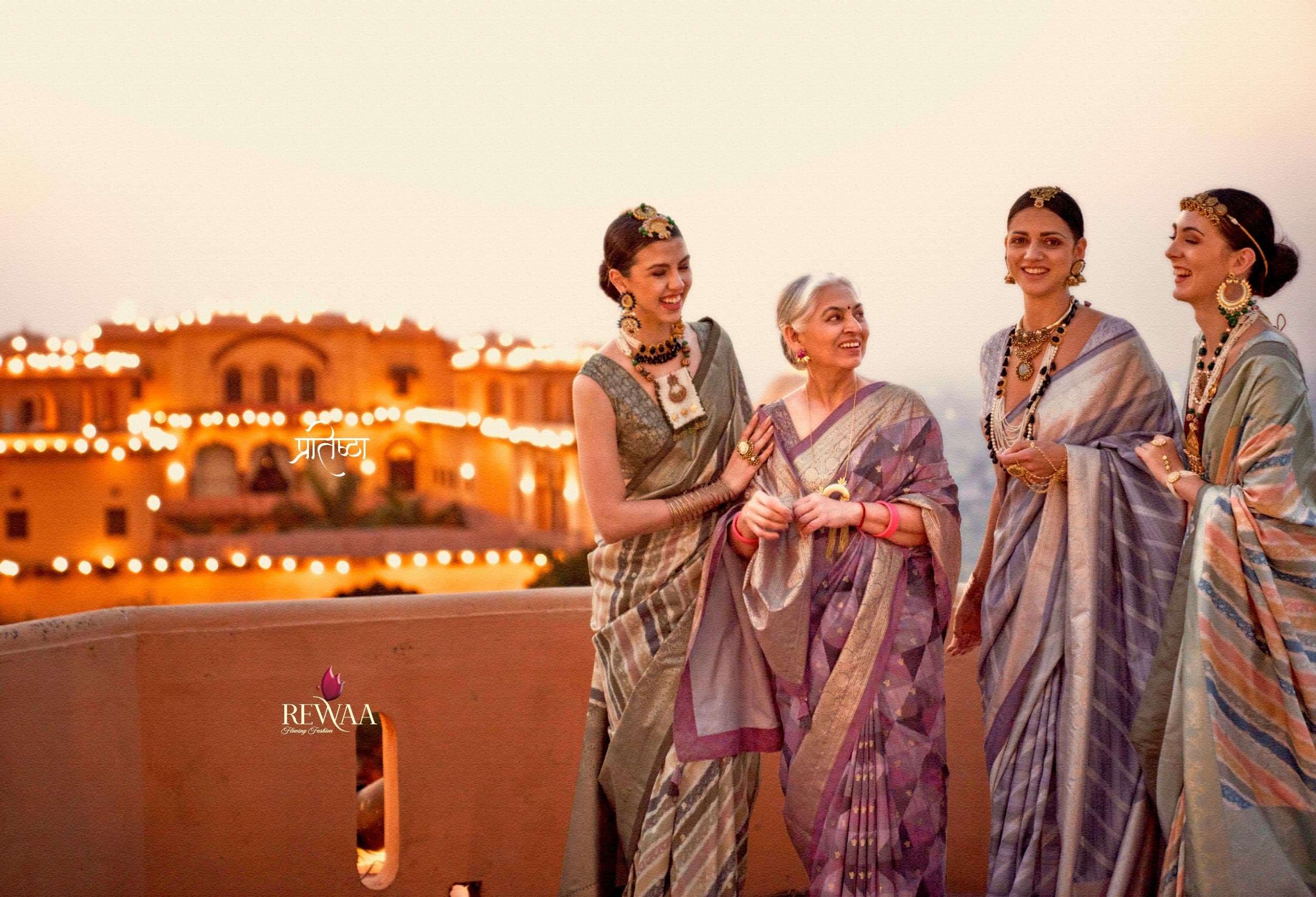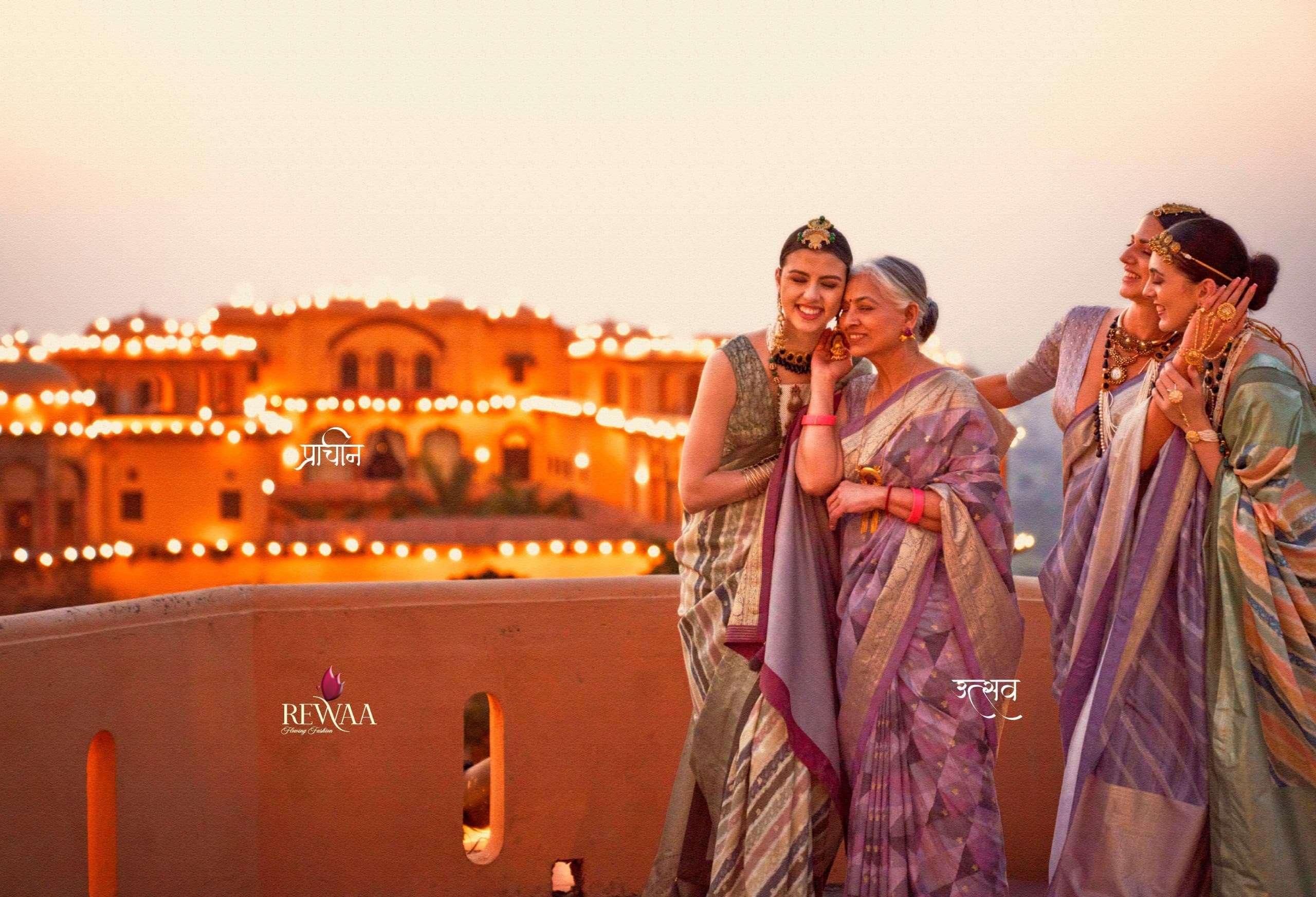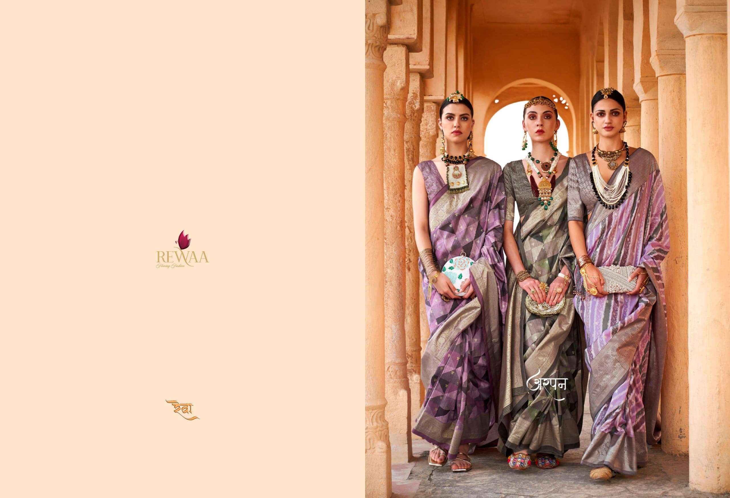 Brand : Rewaa Catalog : Anandam Series : 986 To 994 Saree : Poly Viscose Silk With Extra Hb Print & Gold Foil Edition With Aqua Finish Blouse: : Poly Viscose Silk Price : 1695 +5%GST Occasion : Festival Wear, Wedding Wear, Party Wear |