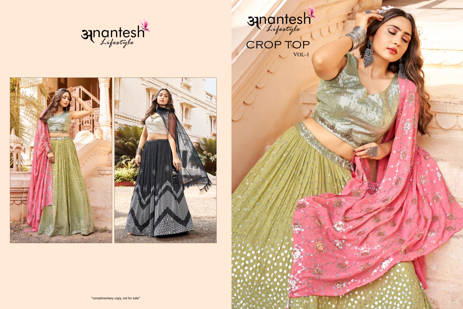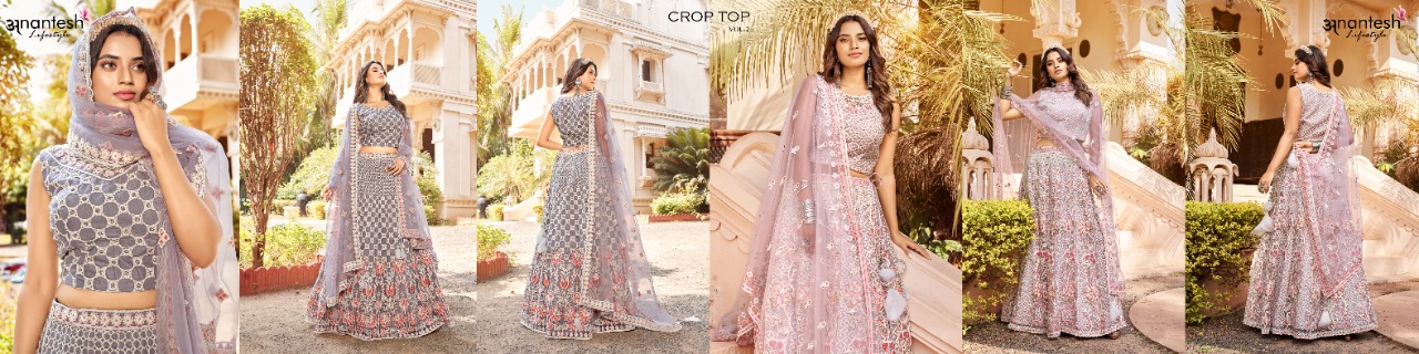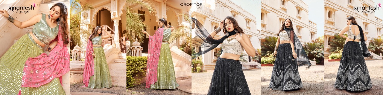 Anantesh Lifestyle New Catalog Launch Crop Top Lehengas Vol 1 Series 2001 Or 2002 Party Wear Collection Single Avilable Manufacturer Surat Gujarat