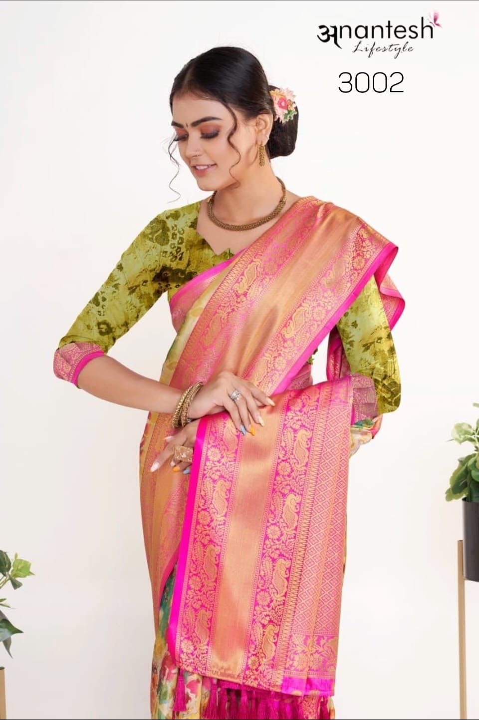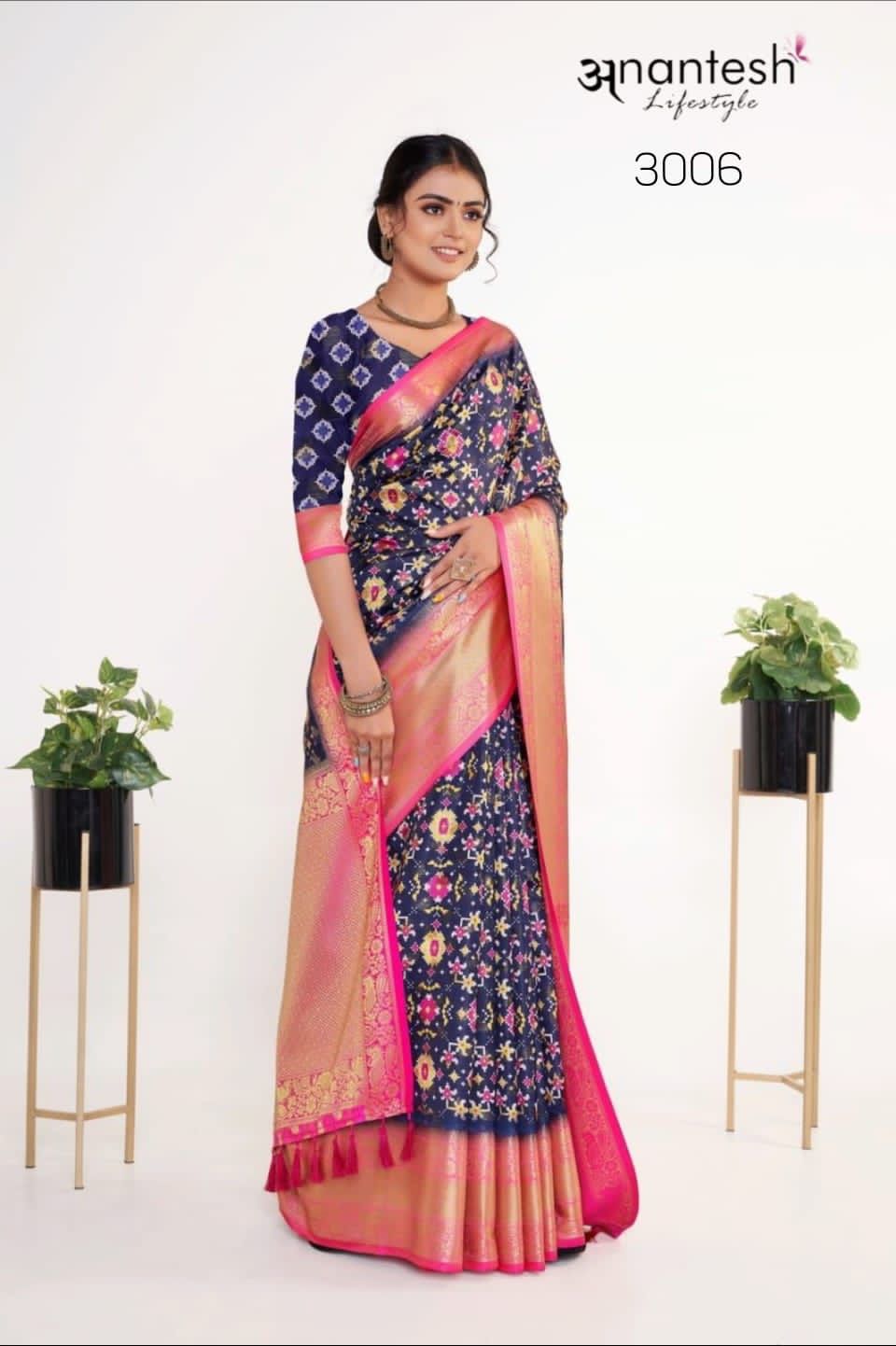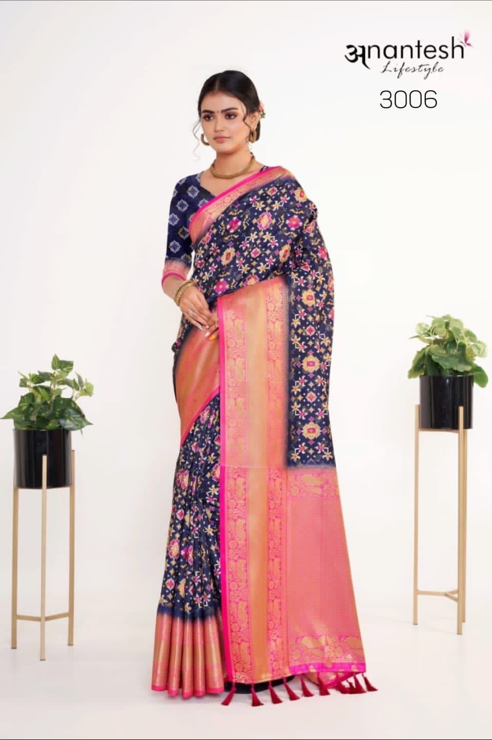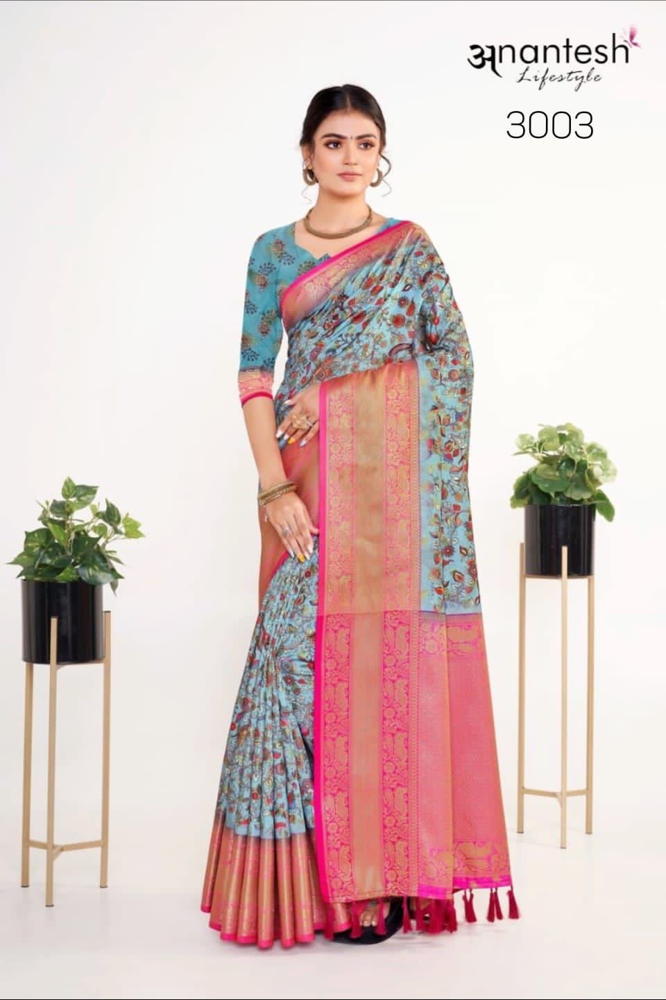 Buy Online Anantesh Lifestyle New Catalog Launch Kalamkari Pattu Silk Series 3001 To 3006 Manufacturer Surat 6 Pcs of Full Catalogue at Wholesale Price. Looking for Anantesh Lifestyle New Catalog Launch Kalamkari Pattu Silk Series 3001 To 3006 Manufacturer Surat Full Catalouge at Best Price? Buy Now Anantesh Lifestyle New Catalog Launch Kalamkari Pattu Silk Series 3001 To 3006 Manufacturer Surat at Wholesale Rate of Rs 7500 with Total 6 Pcs from authroized dealer and supplier of Brand. Cost of Each piece is just only Rs 1250 which is very low and affordable price to resale the product in your retail store ,This is Surat based Wholesale Supplier & Dealer of Brand. Click on Brand name to Know more about Brand's products.Call or Whatsapp on 9898838984 for booking or enquiry