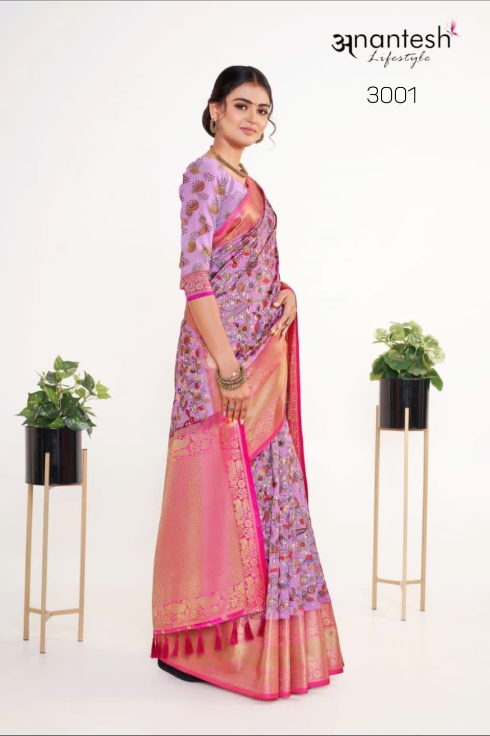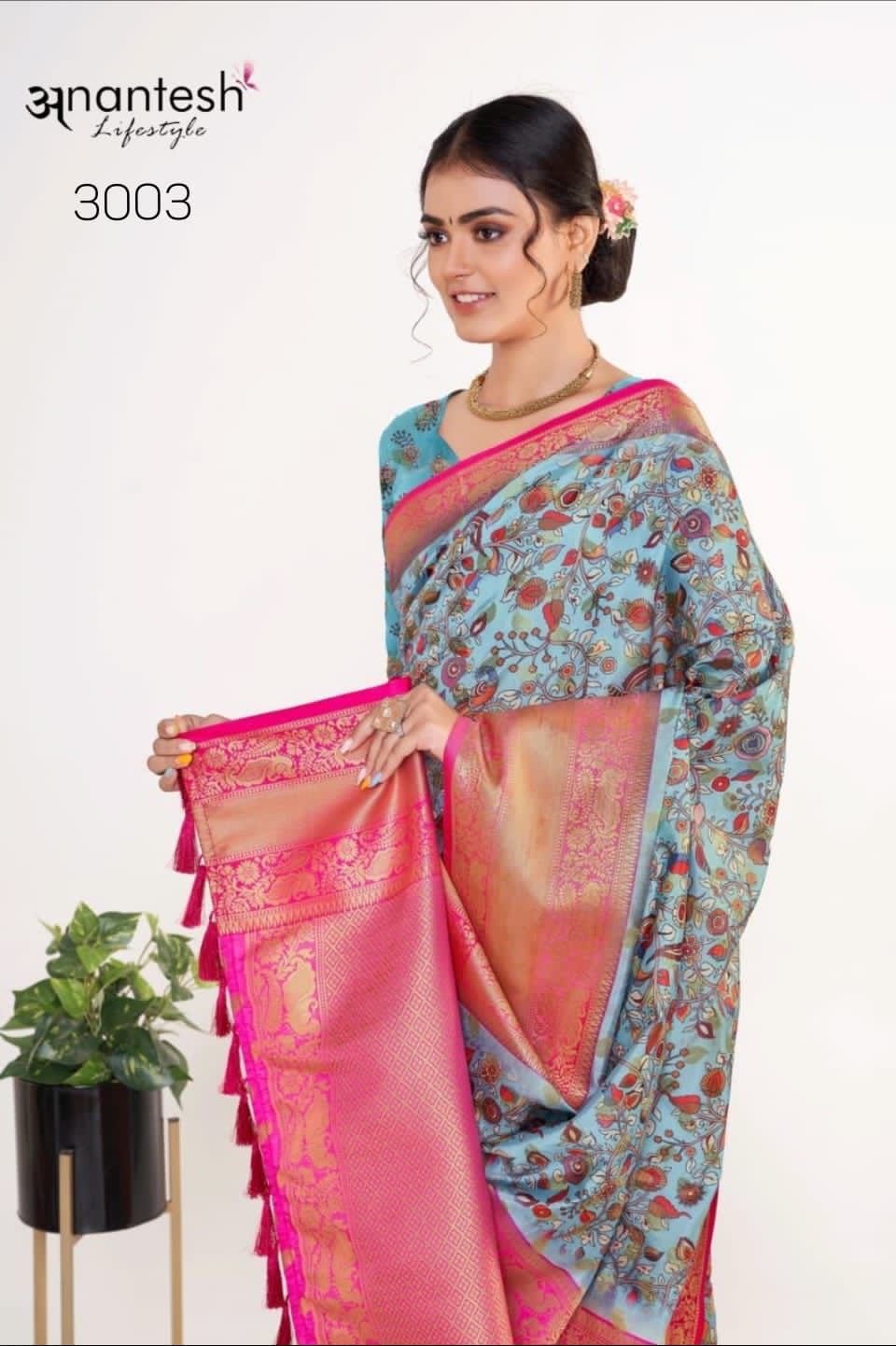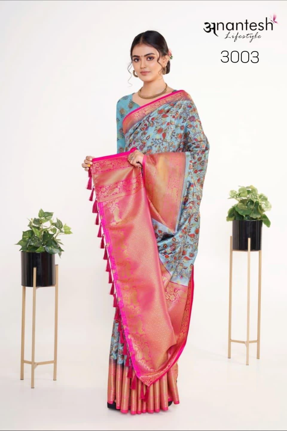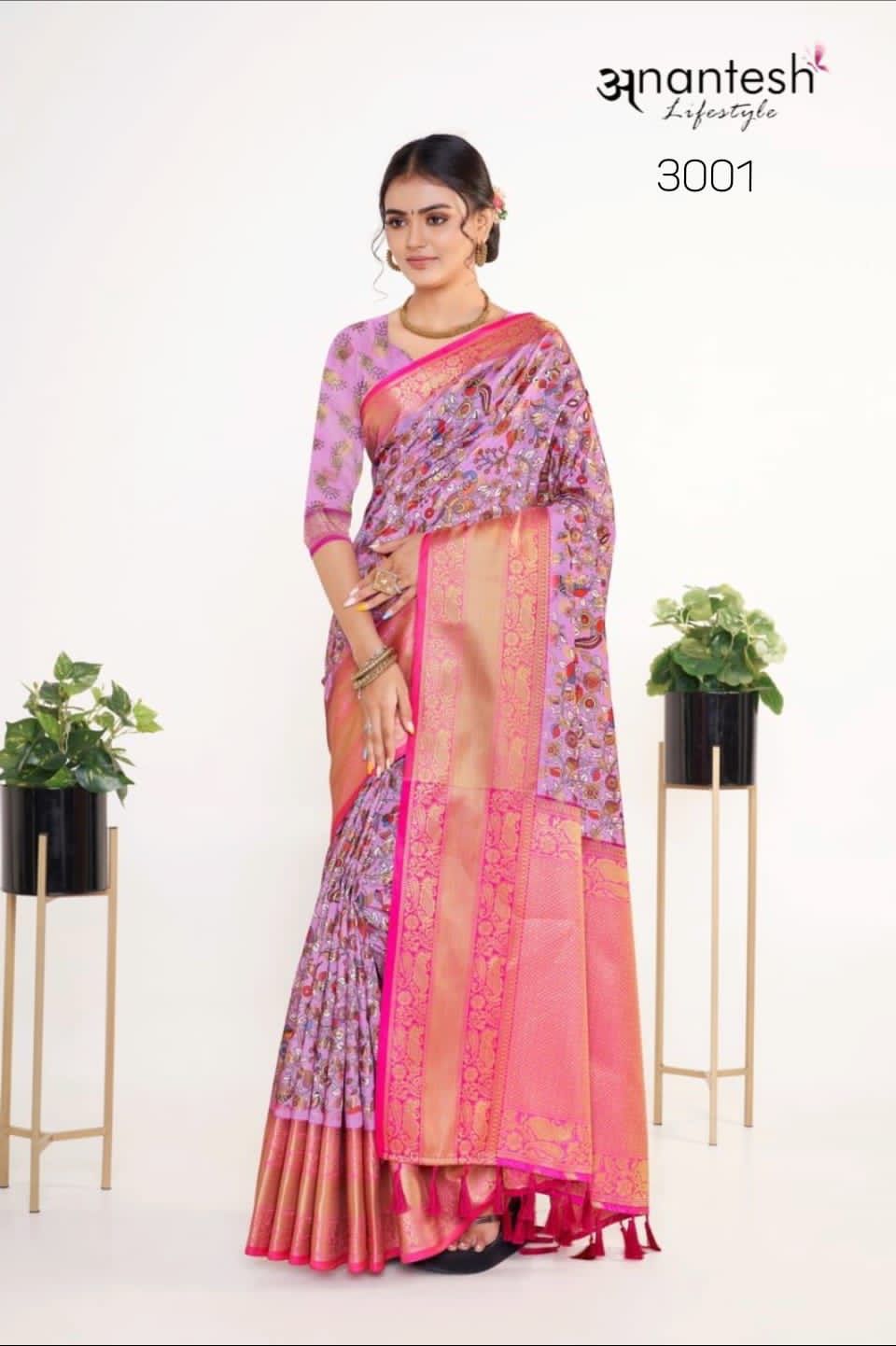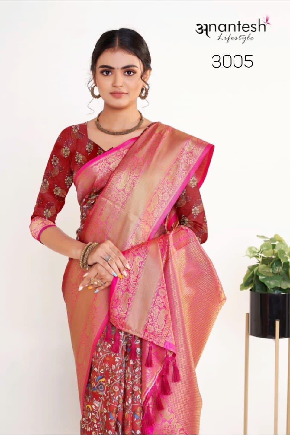 Anantesh Lifestyle New Catalog Launch Kalamkari Pattu Silk Series 3001 To 3006 Manufacturer Surat