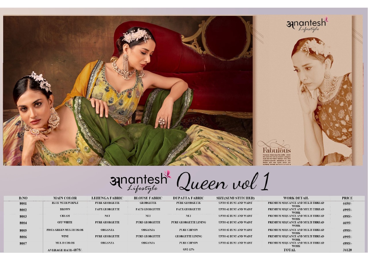 Anantesh Lifestyle New Launch Queen Vol 1 Series 8001 To 8007 Premium Collection Manufacturer Surat