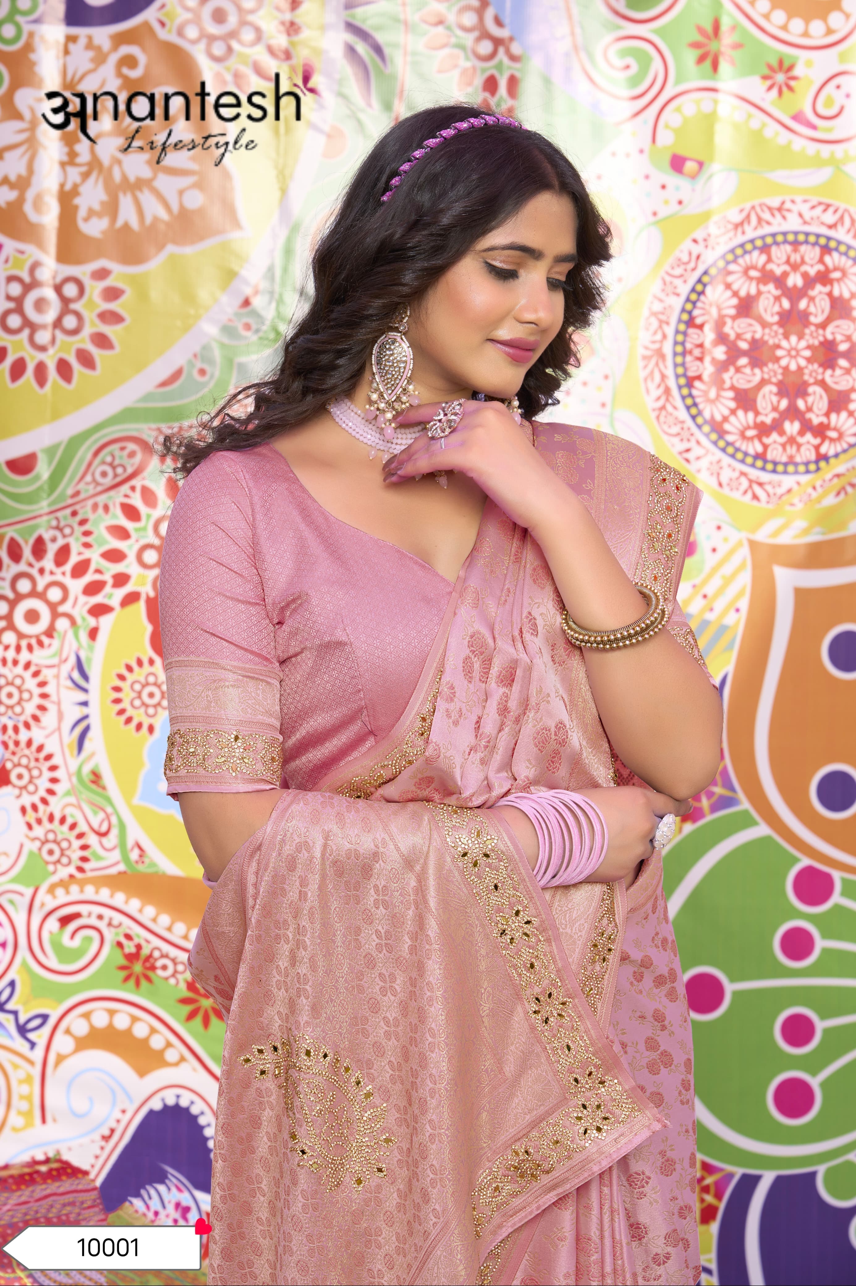 Anantesh Lifestyle New Launch Vishvasundaree Series 10001 To 10004 Satin Silk Handwork Collection Manufacturer Surat