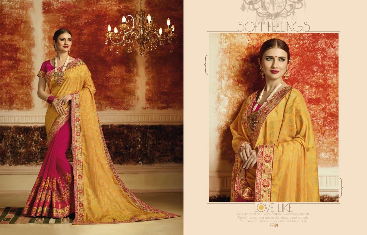 Brand - Kessi . Type - Saree. Series -7701 to 7712. Rate -1499 per pcs . Set & Loose . GST 5 Percent Extra. Delivery-01-09-18. Book your order now . |
