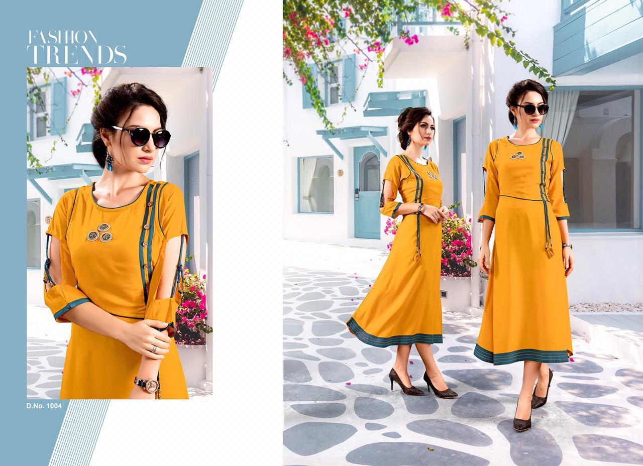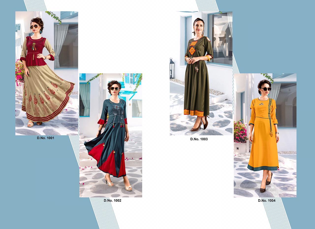 Buy Online Anarkali Vol 1 By Shubh Nx 1001 Series Fancy Reyon Kurti Catlog Wholesale Dealer Surat 4 Pcs of Full Catalogue at Wholesale Price. Looking for Anarkali Vol 1 By Shubh Nx 1001 Series Fancy Reyon Kurti Catlog Wholesale Dealer Surat Full Catalouge at Best Price? Buy Now Anarkali Vol 1 By Shubh Nx 1001 Series Fancy Reyon Kurti Catlog Wholesale Dealer Surat at Wholesale Rate of Rs 2380 with Total 4 Pcs from authroized dealer and supplier of Brand. Cost of Each piece is just only Rs 595 which is very low and affordable price to resale the product in your retail store ,This is Surat based Wholesale Supplier & Dealer of Brand. Click on Brand name to Know more about Brand's products.Call or Whatsapp on 9898838984 for booking or enquiry