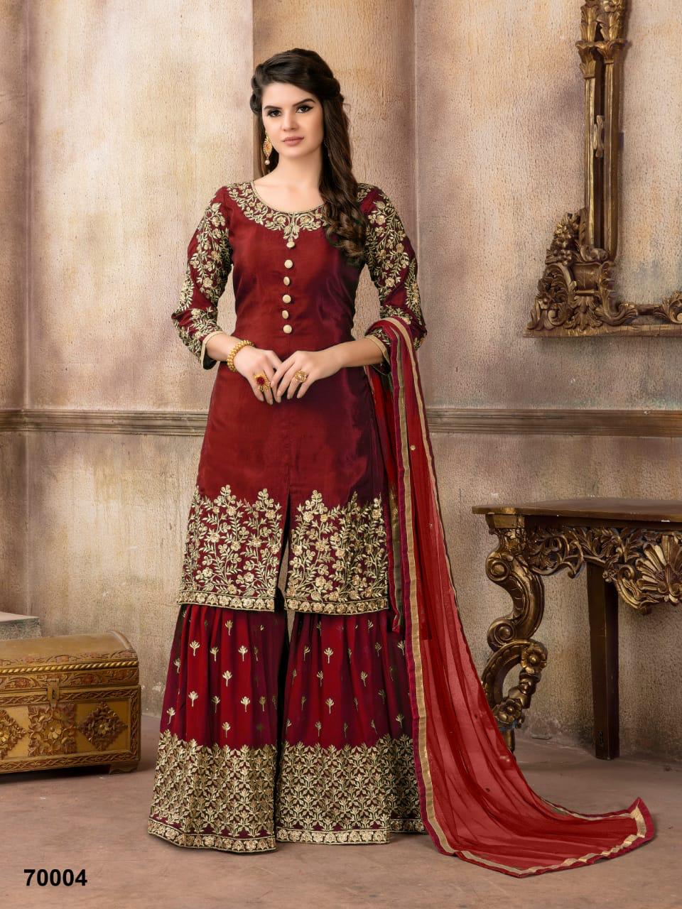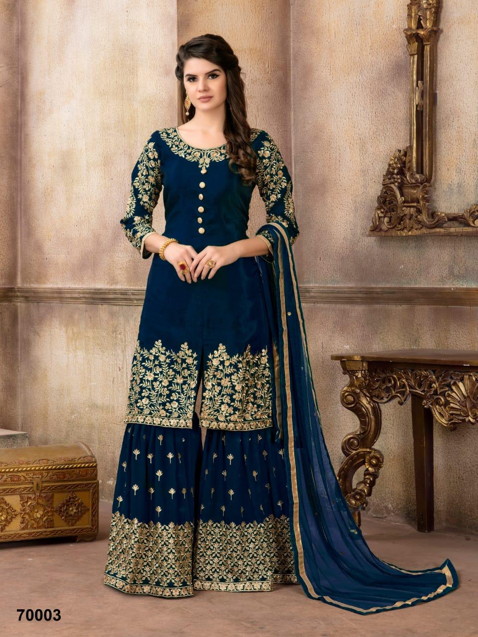 Dear sir, We are launching our most preffered catalogue ?AANAYA 70000 series ? ?Top. Â? pure viscose upada silk ?Bottom- gergette sharara with santool inner ?? Dupatta Â?Net Price :-1995 Dispatch from 30/11/2018 GST 5 Percent Extra Single and multipal available boo now On whatsapp +919898838984 ?Hurry up..Hurry upÂ? ?Booking started from nowÂ???limited sets only |
