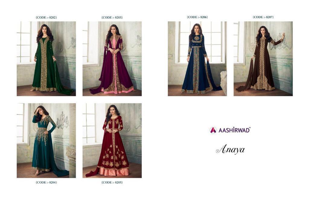 Buy Online Anaya By Ashirwad Series 8202 To 8207 Georgette Embroidered Designer Party Wear Suits Wholesale Supplier Gujarat 7 Pcs of Full Catalogue at Wholesale Price. Looking for Anaya By Ashirwad Series 8202 To 8207 Georgette Embroidered Designer Party Wear Suits Wholesale Supplier Gujarat Full Catalouge at Best Price? Buy Now Anaya By Ashirwad Series 8202 To 8207 Georgette Embroidered Designer Party Wear Suits Wholesale Supplier Gujarat at Wholesale Rate of Rs 15365 with Total 7 Pcs from authroized dealer and supplier of AASHIRWAD Brand. Cost of Each piece is just only Rs 2195 which is very low and affordable price to resale the product in your retail store ,This is Surat based Wholesale Supplier & Dealer of AASHIRWAD Brand. Click on Brand name to Know more about AASHIRWAD Brand's products.Call or Whatsapp on 9898838984 for booking or enquiry