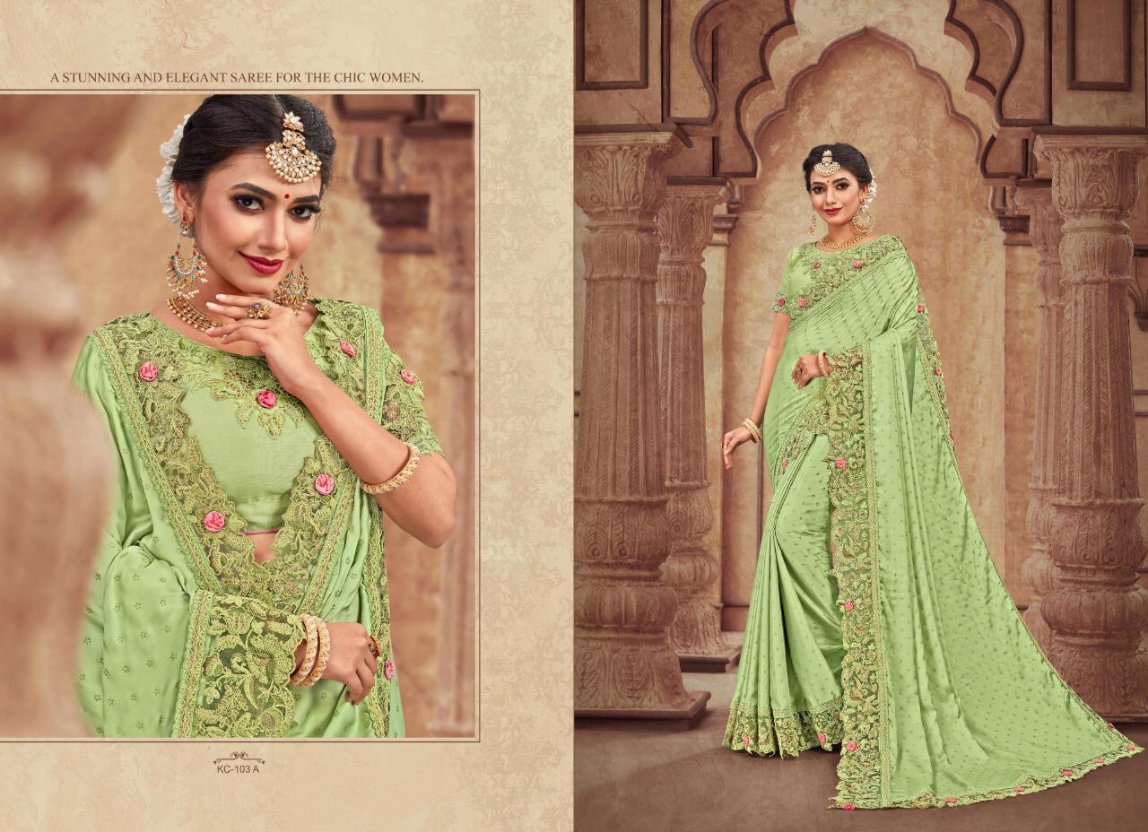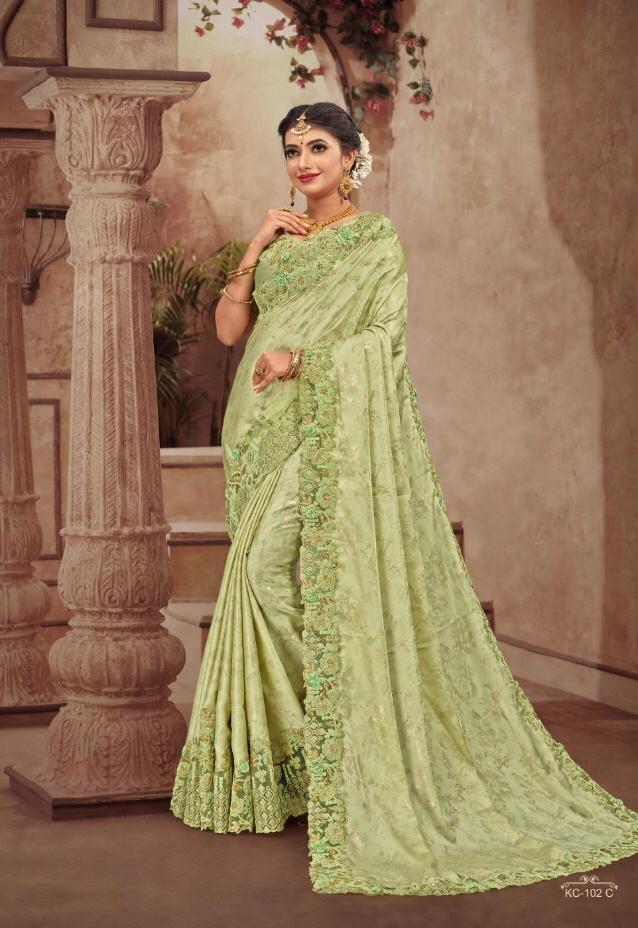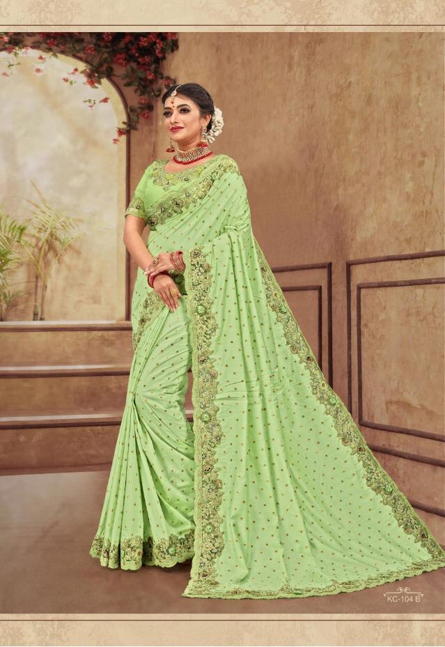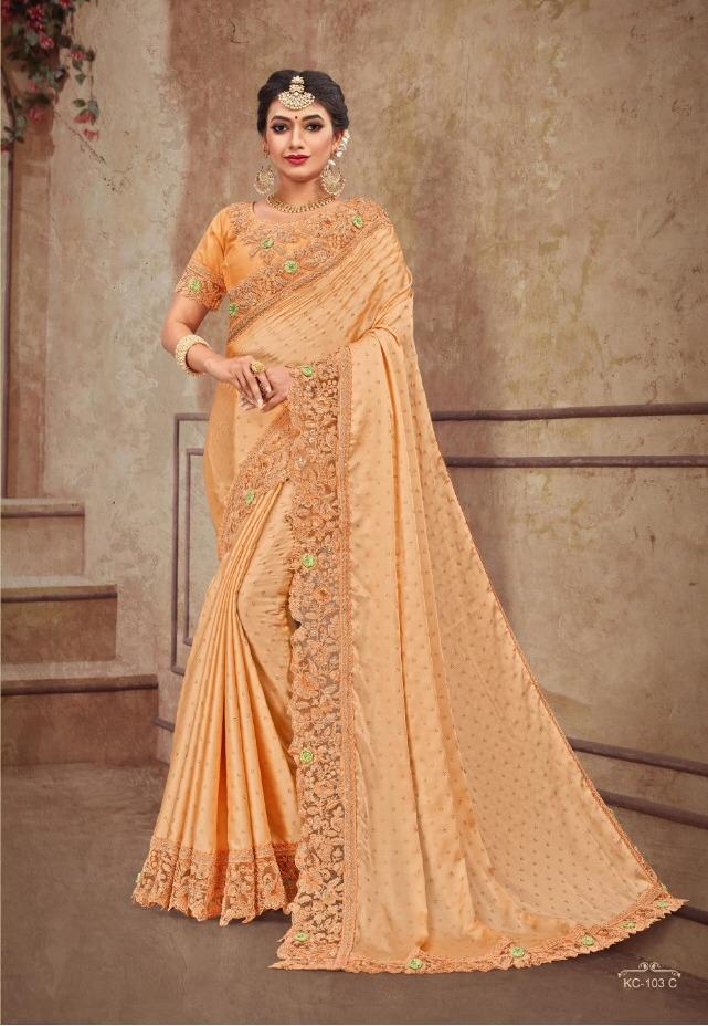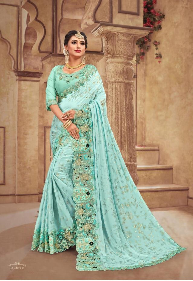 Brand - Kavya cretion. Type - Saree. 101 A B C D to 105 A B C . Total 19 Pcs in set. Single extra 100 * set & loose & singel * GST 5 Percent Extra. Delivery from tomorrow |
