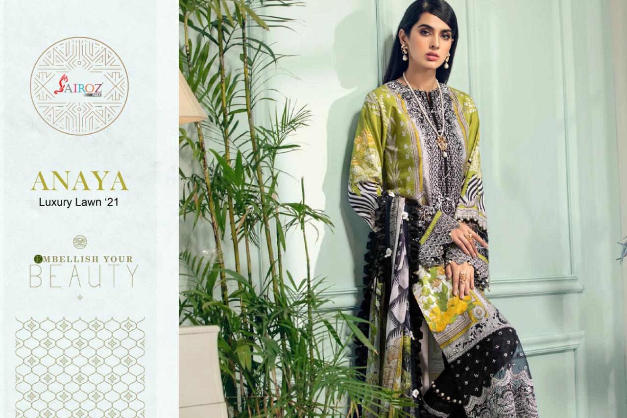 Buy Online Anaya Luxury Lawn By Sairoz Fabs Wholesale Supplier Traders In Surat 4 Pcs of Full Catalogue at Wholesale Price. Looking for Anaya Luxury Lawn By Sairoz Fabs Wholesale Supplier Traders In Surat Full Catalouge at Best Price? Buy Now Anaya Luxury Lawn By Sairoz Fabs Wholesale Supplier Traders In Surat at Wholesale Rate of Rs 2996 with Total 4 Pcs from authroized dealer and supplier of Brand. Cost of Each piece is just only Rs 749 which is very low and affordable price to resale the product in your retail store ,This is Surat based Wholesale Supplier & Dealer of Brand. Click on Brand name to Know more about Brand's products.Call or Whatsapp on 9898838984 for booking or enquiry