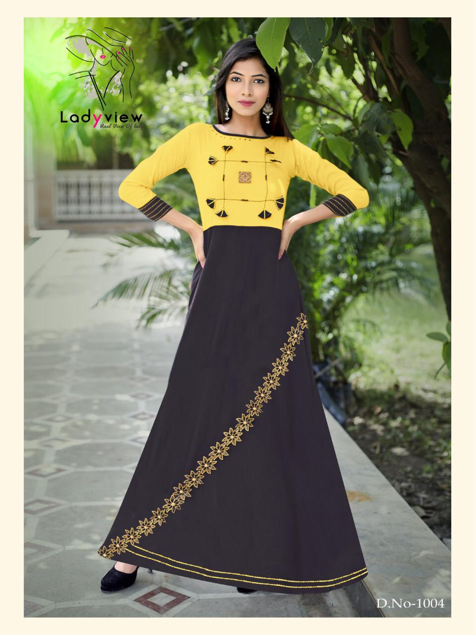 Aneri By Ladyview 1001 Series Fancy Designer Gown Style Kurti Catlog Wholesale Dealer Surat
