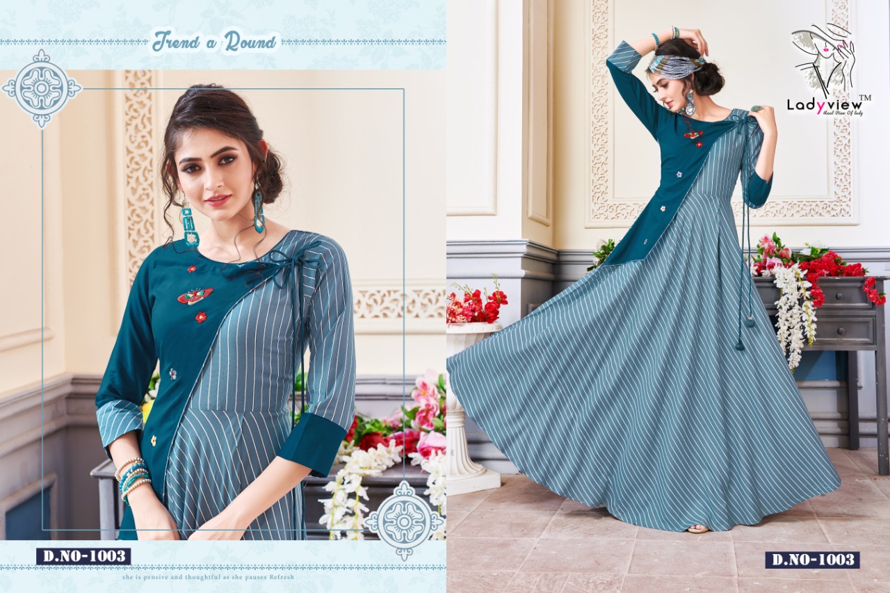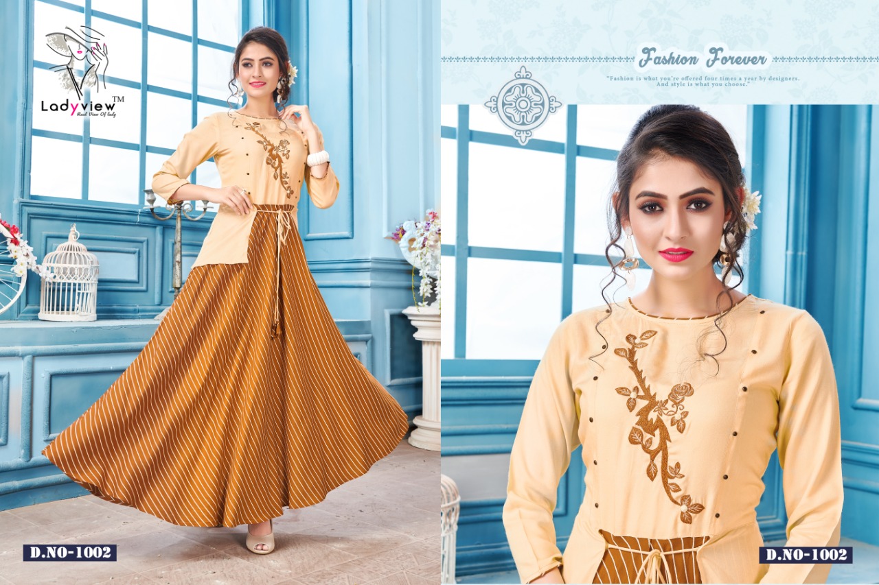 Aneri Vol 2 By Ladyview 1001 Series Fancy Reyon Kurti Collection Wholesaler Surat