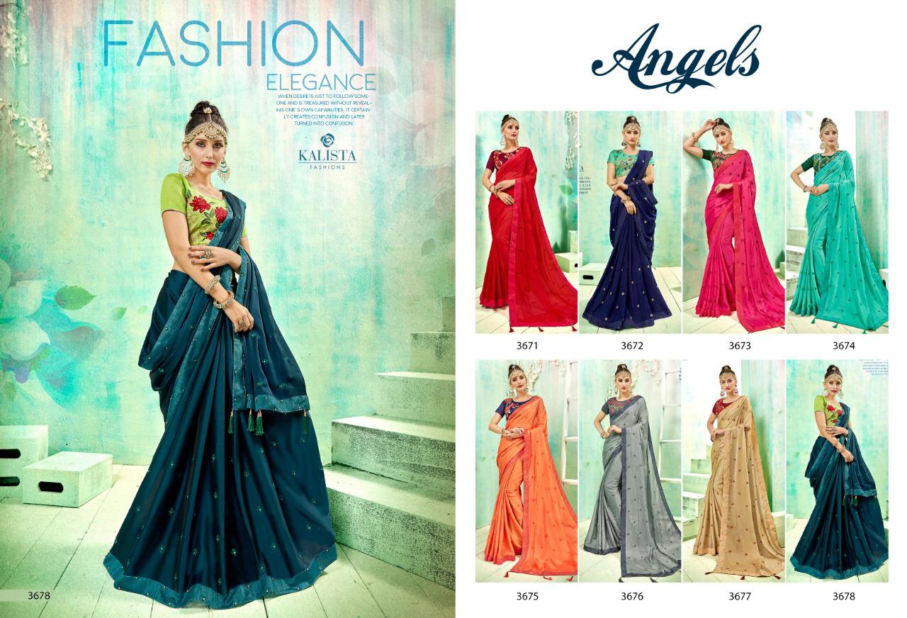 Buy Online Angels By Kalista Rangoli Silk Sarees Wholesale Supplier Gujarat 8 Pcs of Full Catalogue at Wholesale Price. Looking for Angels By Kalista Rangoli Silk Sarees Wholesale Supplier Gujarat Full Catalouge at Best Price? Buy Now Angels By Kalista Rangoli Silk Sarees Wholesale Supplier Gujarat at Wholesale Rate of Rs 5400 with Total 8 Pcs from authroized dealer and supplier of KALISTA FASHION Brand. Cost of Each piece is just only Rs 675 which is very low and affordable price to resale the product in your retail store ,This is Surat based Wholesale Supplier & Dealer of KALISTA FASHION Brand. Click on Brand name to Know more about KALISTA FASHION Brand's products.Call or Whatsapp on 9898838984 for booking or enquiry