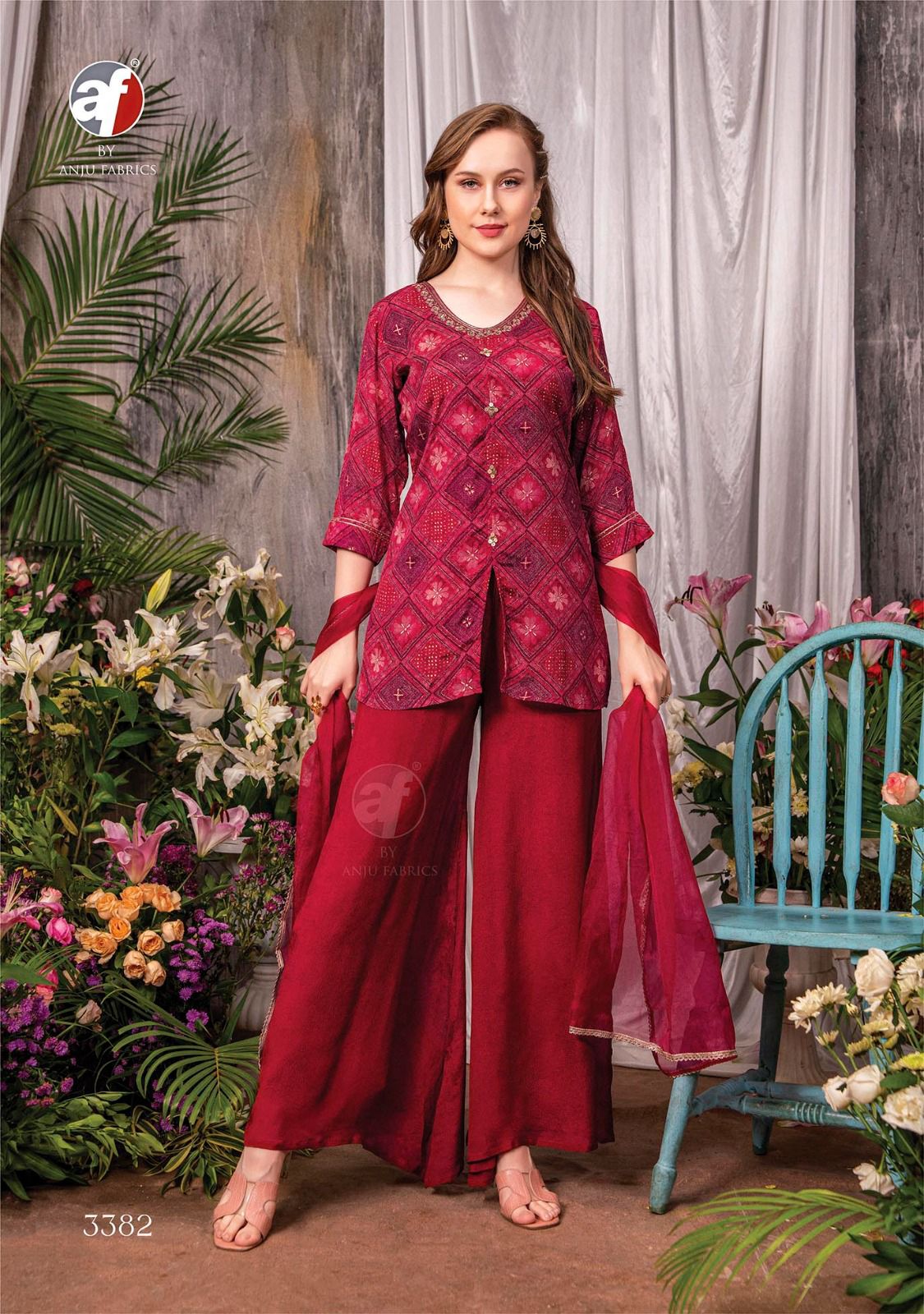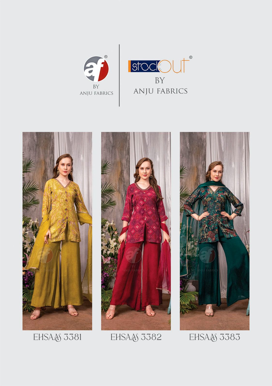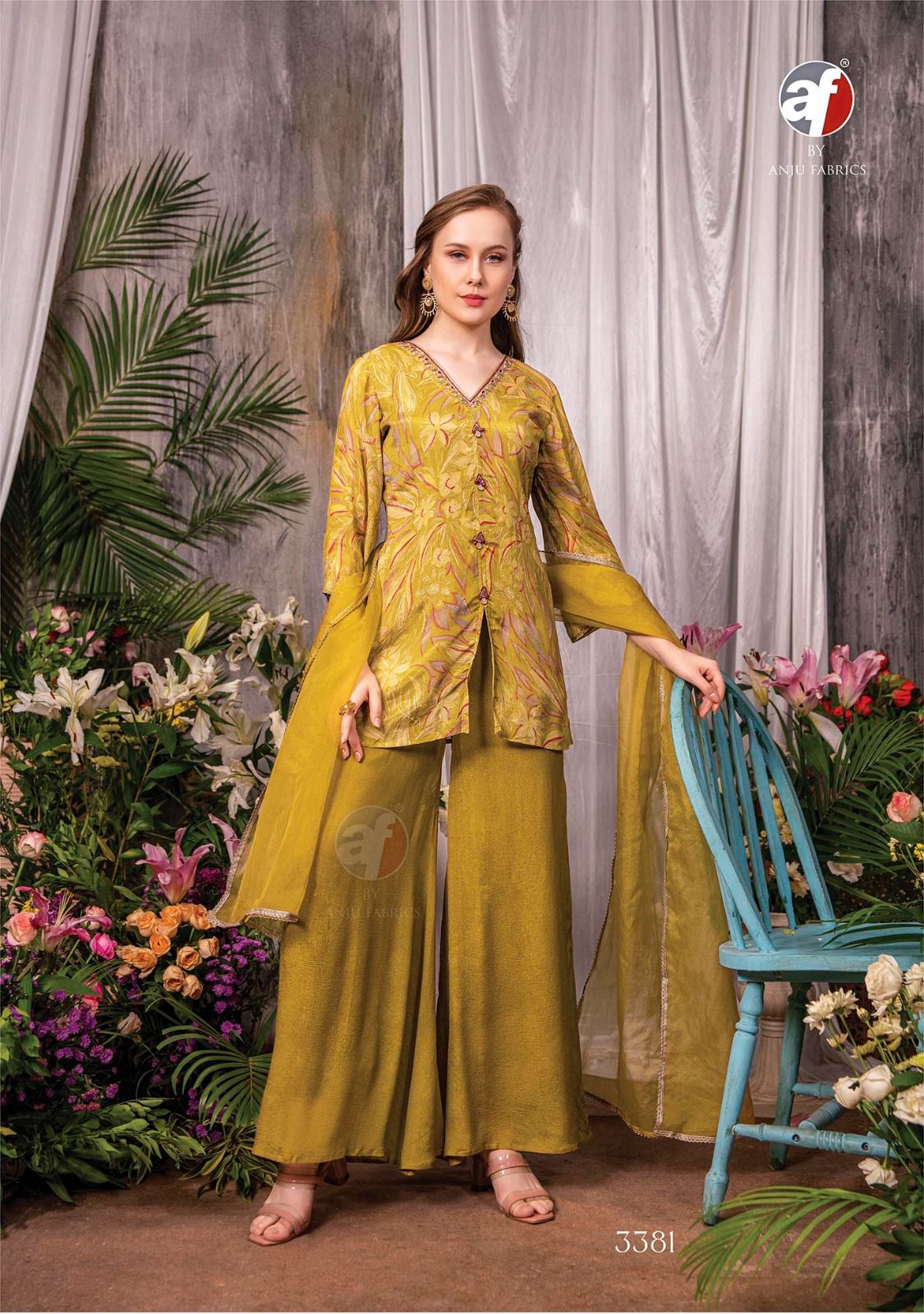 Buy Online Anju Fabric New Design Ehsaas Fancy Kurti Palazzo With Dupatta Concept 3 Pcs of Full Catalogue at Wholesale Price. Looking for Anju Fabric New Design Ehsaas Fancy Kurti Palazzo With Dupatta Concept Full Catalouge at Best Price? Buy Now Anju Fabric New Design Ehsaas Fancy Kurti Palazzo With Dupatta Concept at Wholesale Rate of Rs 0 with Total 3 Pcs from authroized dealer and supplier of Brand. Cost of Each piece is just only Rs 0 which is very low and affordable price to resale the product in your retail store ,This is Surat based Wholesale Supplier & Dealer of Brand. Click on Brand name to Know more about Brand's products.Call or Whatsapp on 9898838984 for booking or enquiry