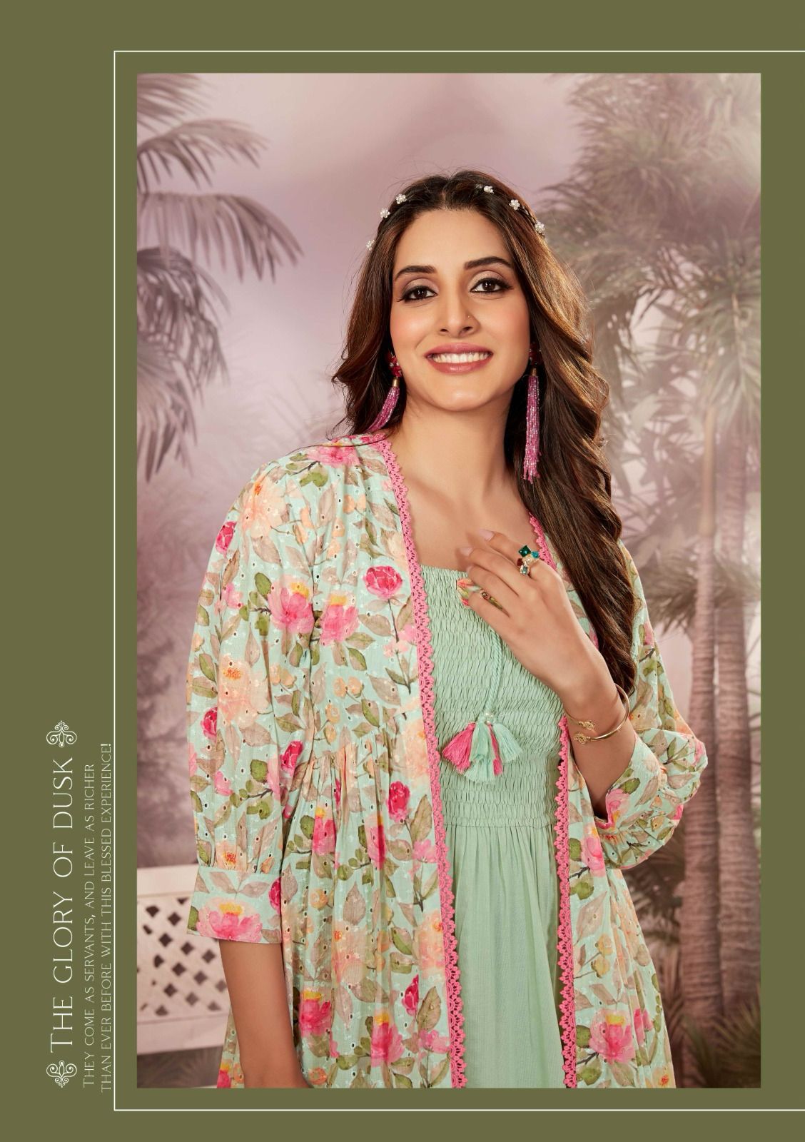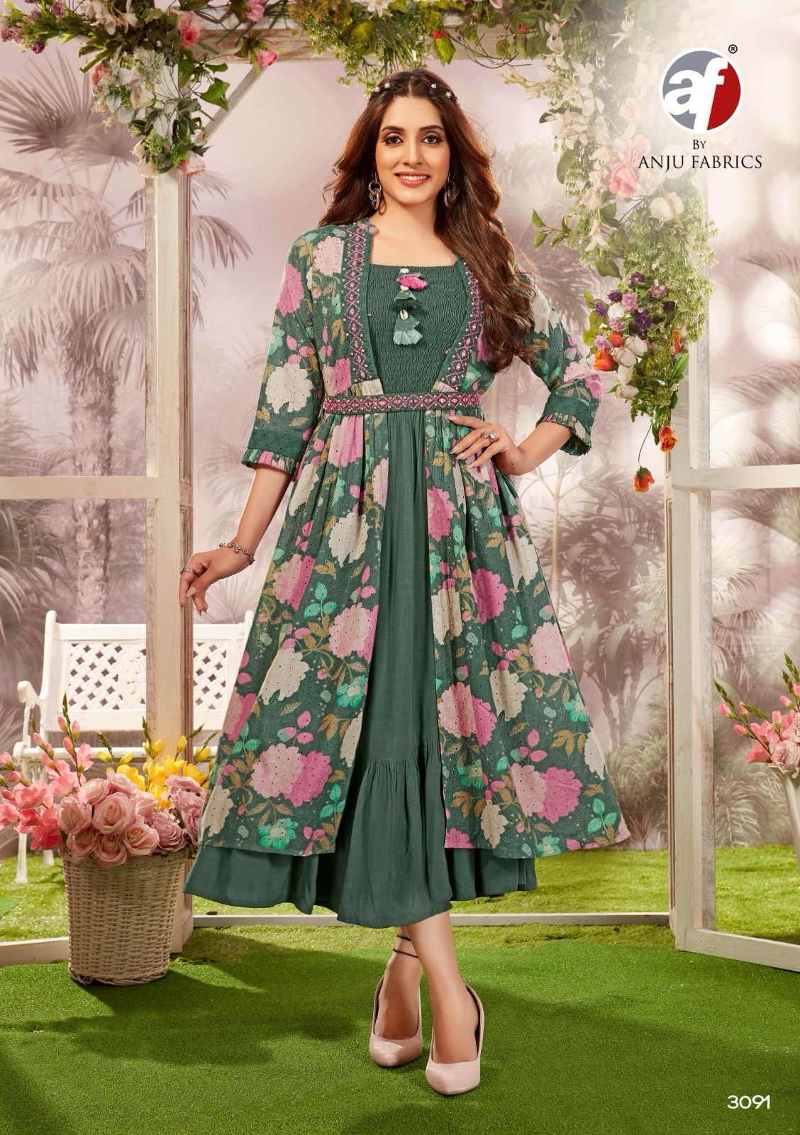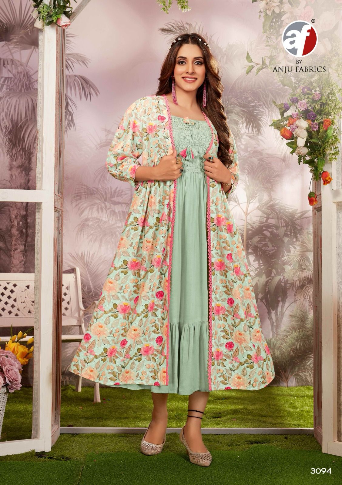 Anju Fabric New Design Shrill Girl Stylish Midi With Jacket Collection Manufacturer Surat
