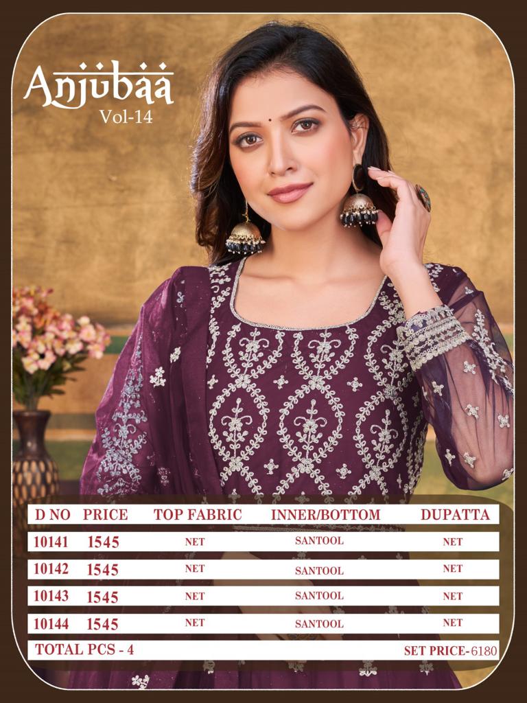 Buy Online Anjubaa Vol 14 Designer Suits 4 Pcs of Full Catalogue at Wholesale Price. Looking for Anjubaa Vol 14 Designer Suits Full Catalouge at Best Price? Buy Now Anjubaa Vol 14 Designer Suits at Wholesale Rate of Rs 6180 with Total 4 Pcs from authroized dealer and supplier of Brand. Cost of Each piece is just only Rs 1545 which is very low and affordable price to resale the product in your retail store ,This is Surat based Wholesale Supplier & Dealer of Brand. Click on Brand name to Know more about Brand's products.Call or Whatsapp on 9898838984 for booking or enquiry