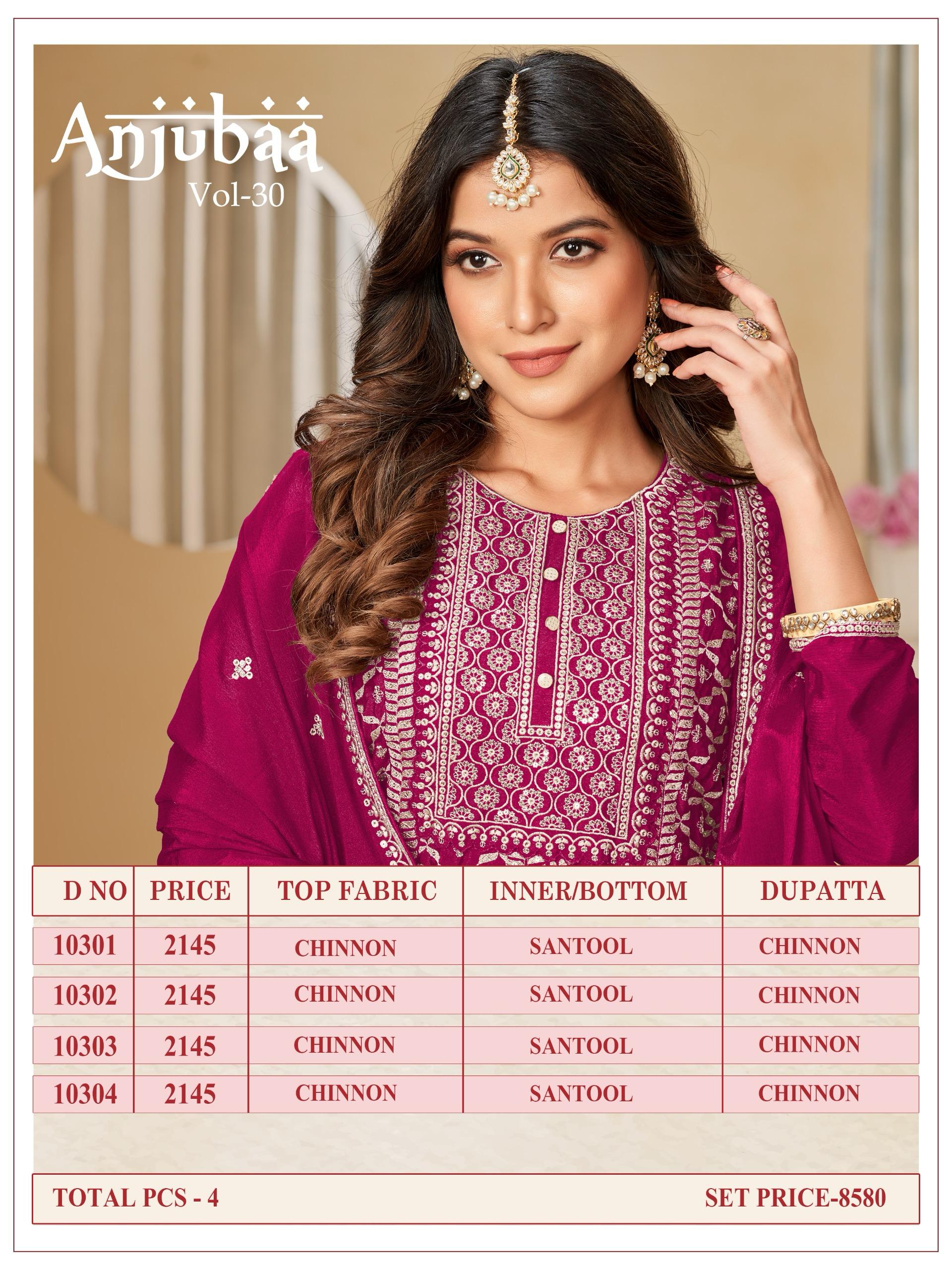 Buy Online Anjubaa Vol 30 Plazzo Suit 4 Pcs of Full Catalogue at Wholesale Price. Looking for Anjubaa Vol 30 Plazzo Suit Full Catalouge at Best Price? Buy Now Anjubaa Vol 30 Plazzo Suit at Wholesale Rate of Rs 8580 with Total 4 Pcs from authroized dealer and supplier of Brand. Cost of Each piece is just only Rs 2145 which is very low and affordable price to resale the product in your retail store ,This is Surat based Wholesale Supplier & Dealer of Brand. Click on Brand name to Know more about Brand's products.Call or Whatsapp on 9898838984 for booking or enquiry