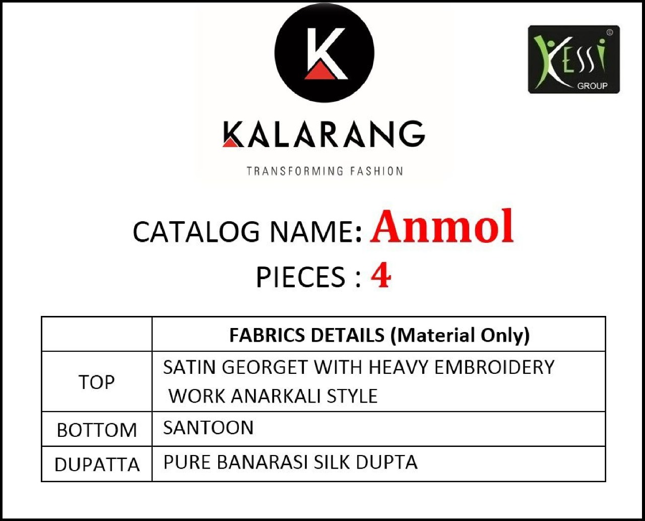 Buy Online Anmol By Kalarang Designer Party Wear Suits Wholesale Supplier Gujarat 4 Pcs of Full Catalogue at Wholesale Price. Looking for Anmol By Kalarang Designer Party Wear Suits Wholesale Supplier Gujarat Full Catalouge at Best Price? Buy Now Anmol By Kalarang Designer Party Wear Suits Wholesale Supplier Gujarat at Wholesale Rate of Rs 7596 with Total 4 Pcs from authroized dealer and supplier of KALARANG Brand. Cost of Each piece is just only Rs 1899 which is very low and affordable price to resale the product in your retail store ,This is Surat based Wholesale Supplier & Dealer of KALARANG Brand. Click on Brand name to Know more about KALARANG Brand's products.Call or Whatsapp on 9898838984 for booking or enquiry