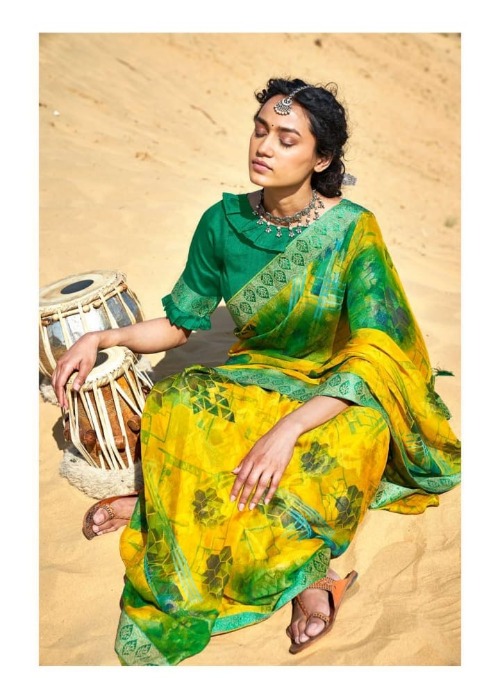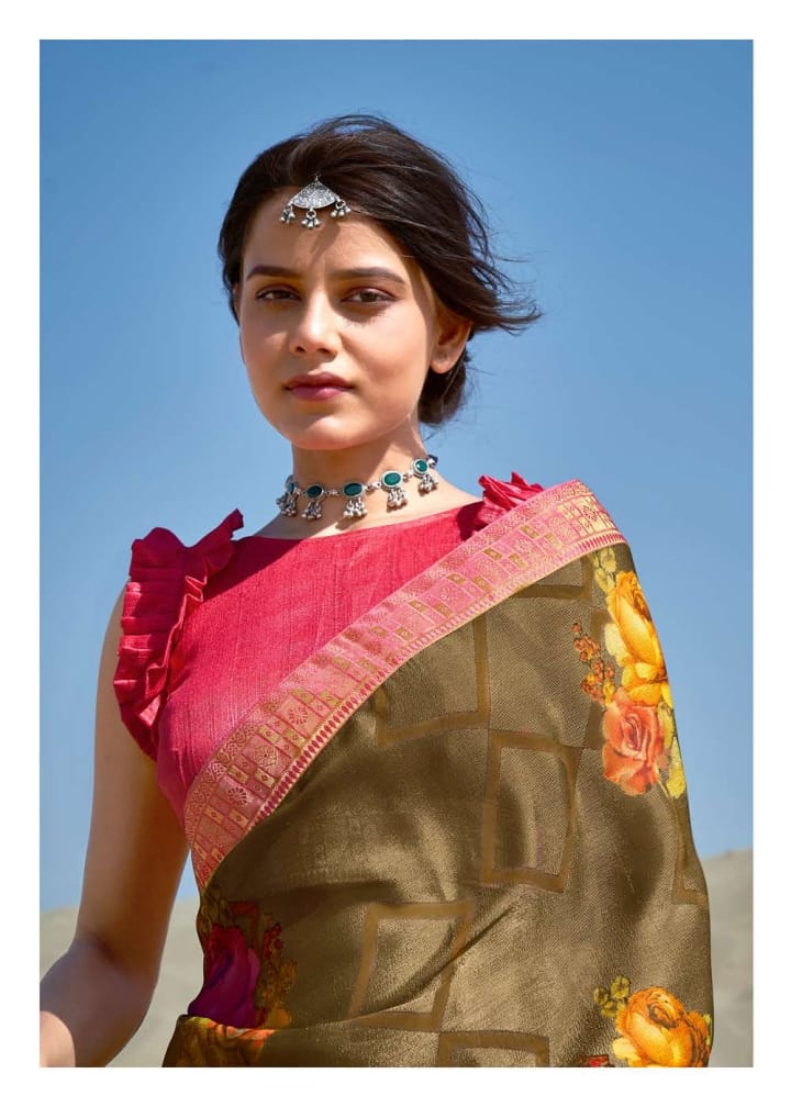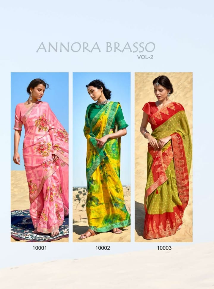 Annora Brasso Shangrila Presents Premium Brasso Sarees And Designer Silky Jequard Borders ...!! 6 pc 695/- |