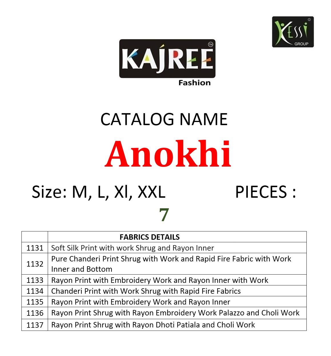 Buy Online Anokhi By Kajaree Beautiful Designer Indo Western Wear Wholesale Supplier Surat 7 Pcs of Full Catalogue at Wholesale Price. Looking for Anokhi By Kajaree Beautiful Designer Indo Western Wear Wholesale Supplier Surat Full Catalouge at Best Price? Buy Now Anokhi By Kajaree Beautiful Designer Indo Western Wear Wholesale Supplier Surat at Wholesale Rate of Rs 5943 with Total 7 Pcs from authroized dealer and supplier of Brand. Cost of Each piece is just only Rs 849 which is very low and affordable price to resale the product in your retail store ,This is Surat based Wholesale Supplier & Dealer of Brand. Click on Brand name to Know more about Brand's products.Call or Whatsapp on 9898838984 for booking or enquiry