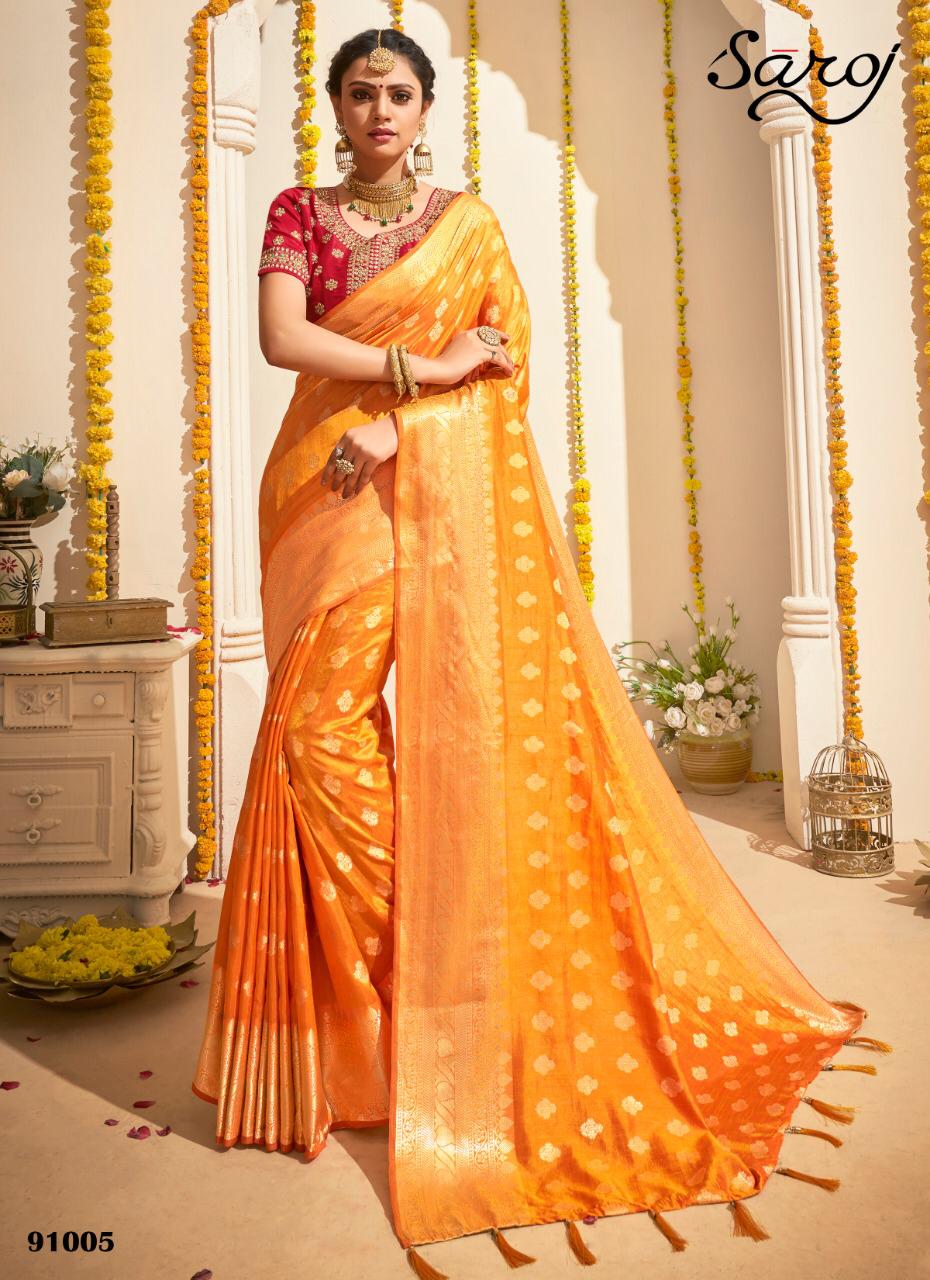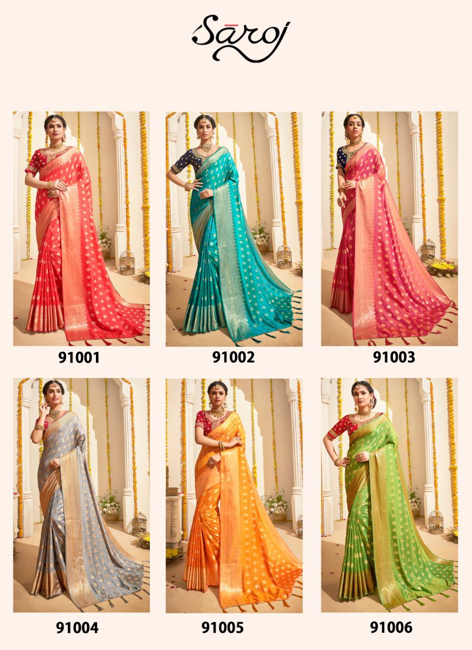 Buy Online Anokhi By Saroj Sana Silk Sarees Wholesale Supplier And Dealer Surat 6 Pcs of Full Catalogue at Wholesale Price. Looking for Anokhi By Saroj Sana Silk Sarees Wholesale Supplier And Dealer Surat Full Catalouge at Best Price? Buy Now Anokhi By Saroj Sana Silk Sarees Wholesale Supplier And Dealer Surat at Wholesale Rate of Rs 8250 with Total 6 Pcs from authroized dealer and supplier of SAROJ SAREE Brand. Cost of Each piece is just only Rs 1375 which is very low and affordable price to resale the product in your retail store ,This is Surat based Wholesale Supplier & Dealer of SAROJ SAREE Brand. Click on Brand name to Know more about SAROJ SAREE Brand's products.Call or Whatsapp on 9898838984 for booking or enquiry