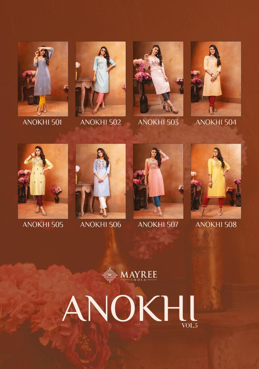 Buy Online Anokhi Vol 5 By Mayree India Manufacturer Traders And Dealer From All Over India 8 Pcs of Full Catalogue at Wholesale Price. Looking for Anokhi Vol 5 By Mayree India Manufacturer Traders And Dealer From All Over India Full Catalouge at Best Price? Buy Now Anokhi Vol 5 By Mayree India Manufacturer Traders And Dealer From All Over India at Wholesale Rate of Rs 5160 with Total 8 Pcs from authroized dealer and supplier of Brand. Cost of Each piece is just only Rs 645 which is very low and affordable price to resale the product in your retail store ,This is Surat based Wholesale Supplier & Dealer of Brand. Click on Brand name to Know more about Brand's products.Call or Whatsapp on 9898838984 for booking or enquiry